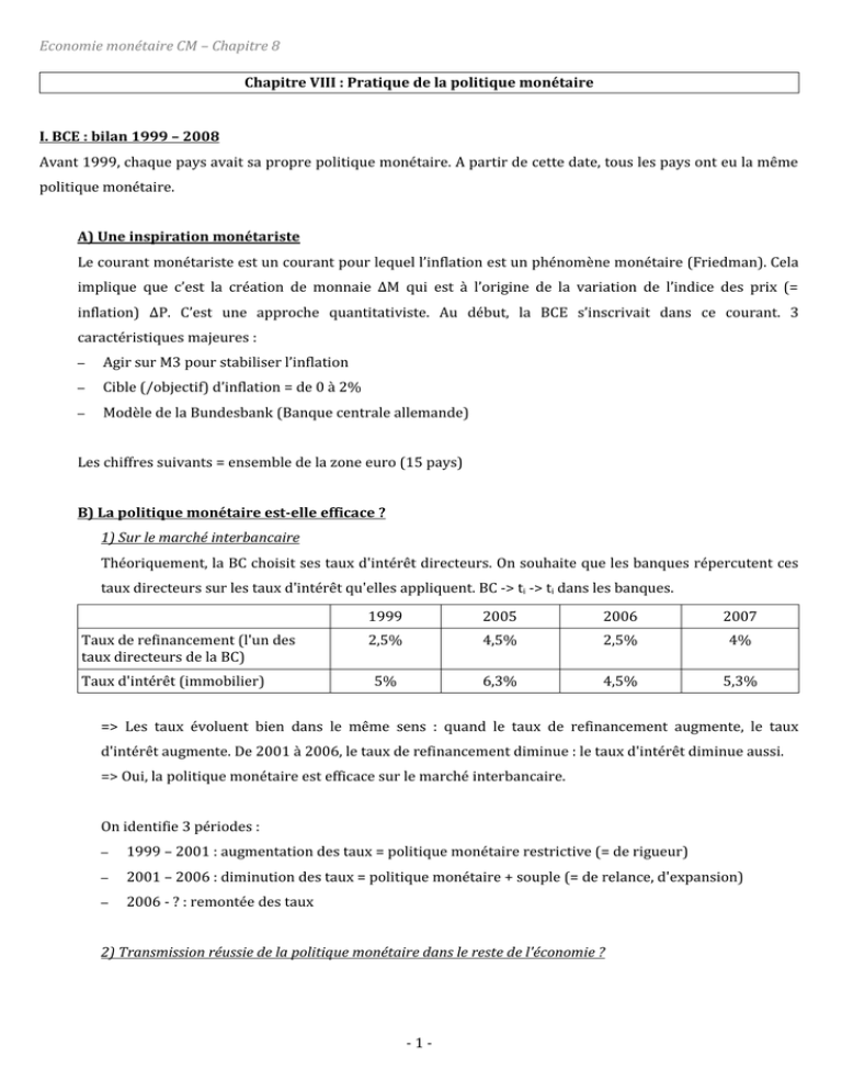 Economie monétaire CM – Chapitre 8