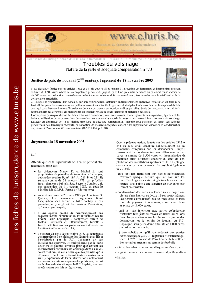 Les fiches de Jurisprudence de www.eJuris.be
