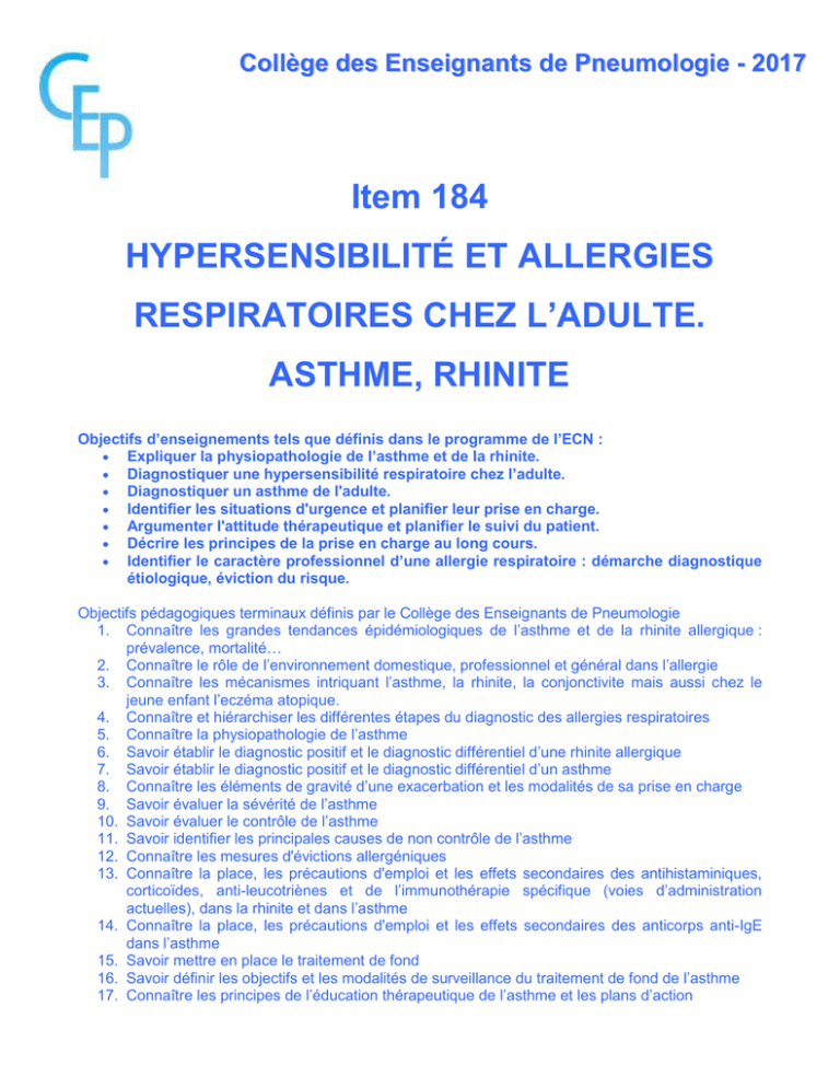 ce qui signifie que d’autres maladies que l’asthme sont associées à une hyperréactivité bronchique