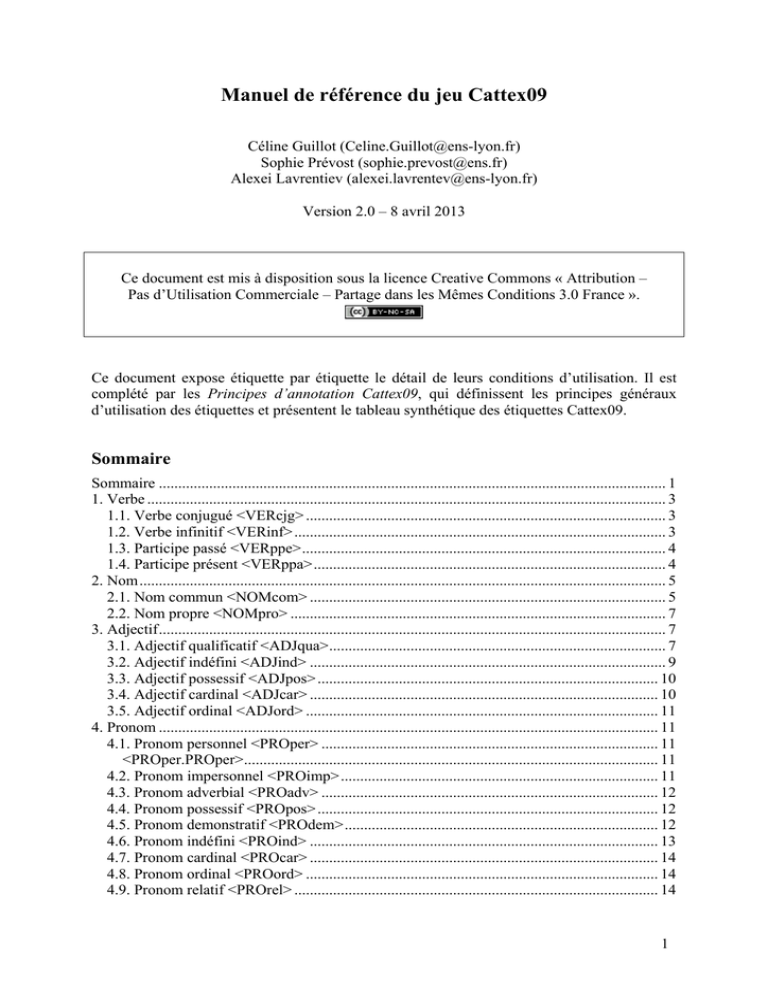 1.1. Verbe conjugué <VERcjg> ............................................................................................. 3