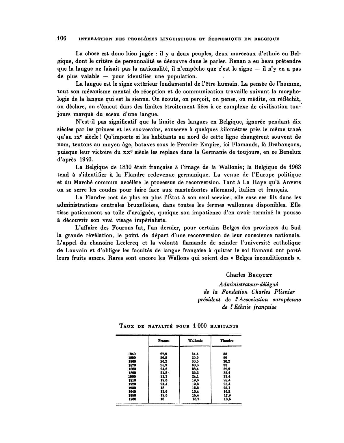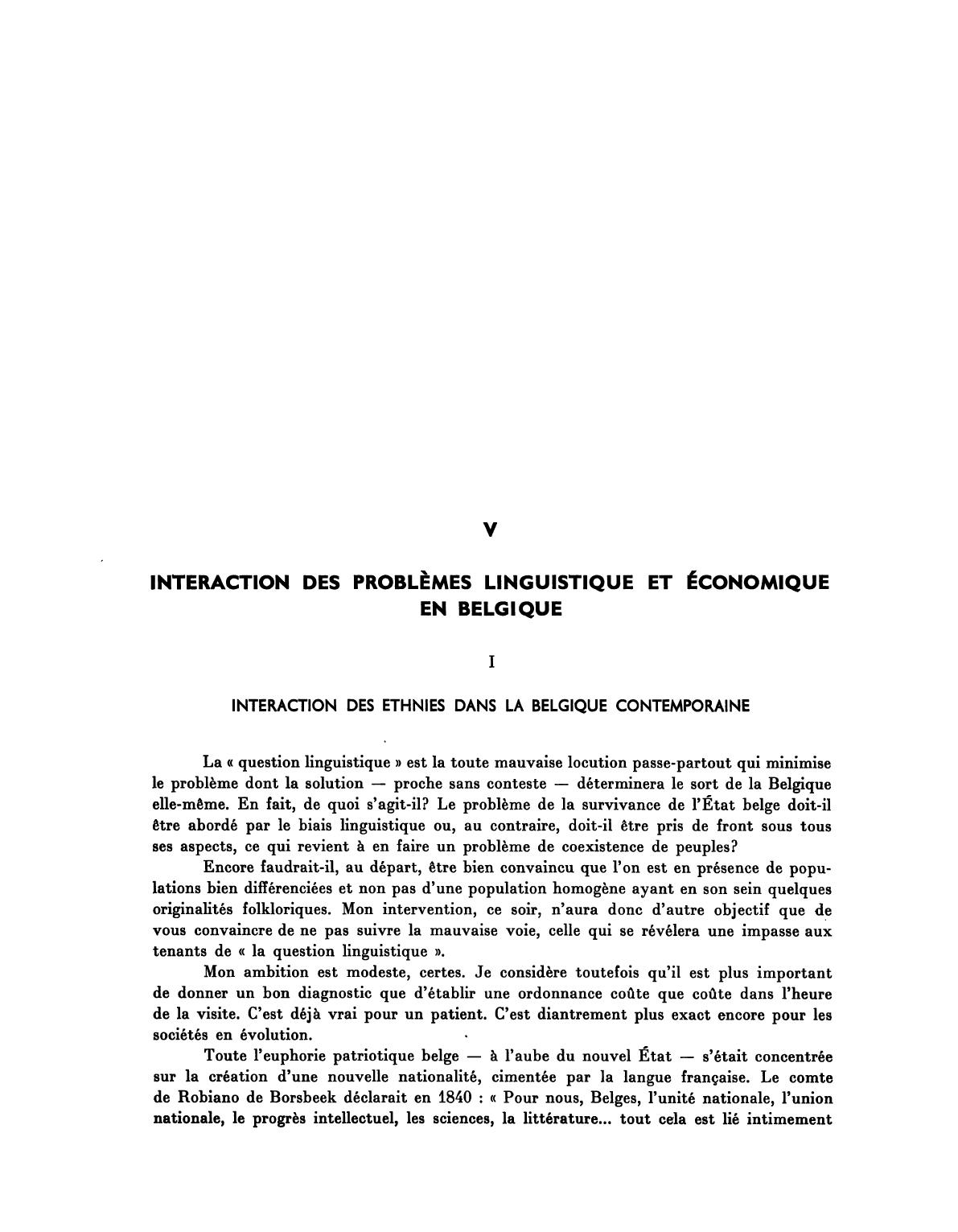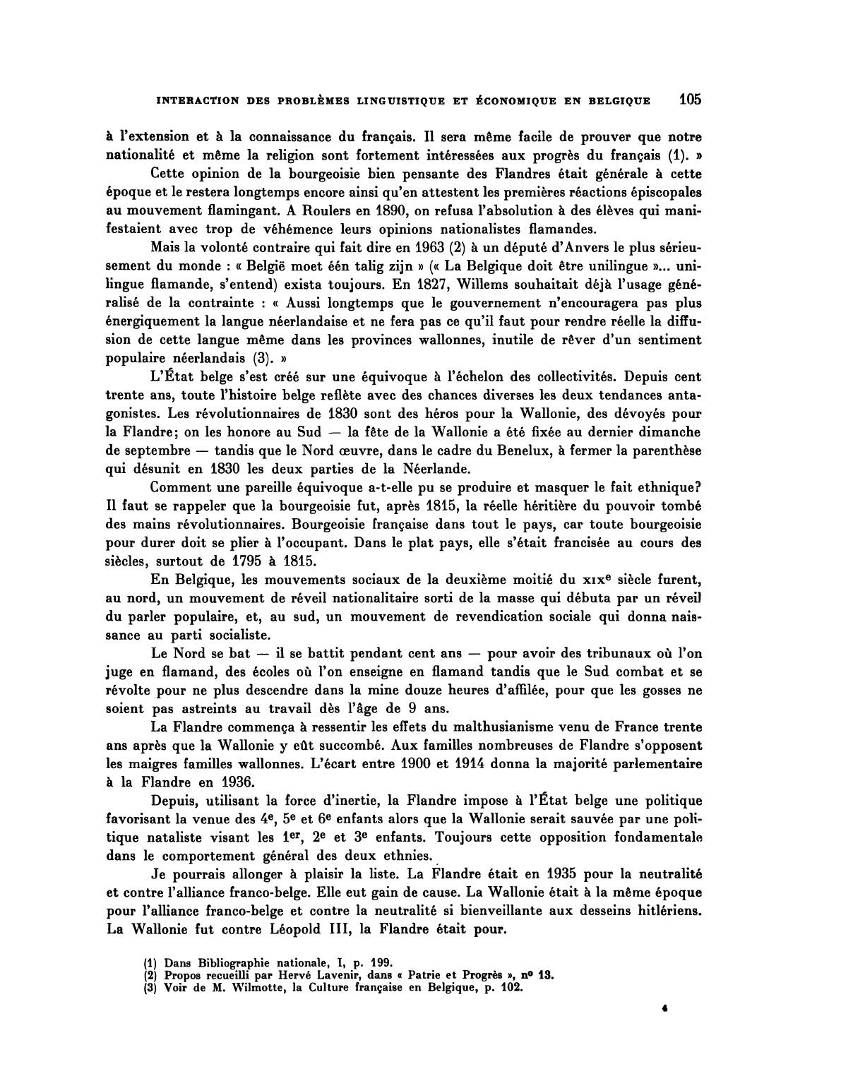 INTERACTION DES PROBLÈMES LINGUISTIQUE ET ÉCONOMIQUE EN BELGIQUE 105
