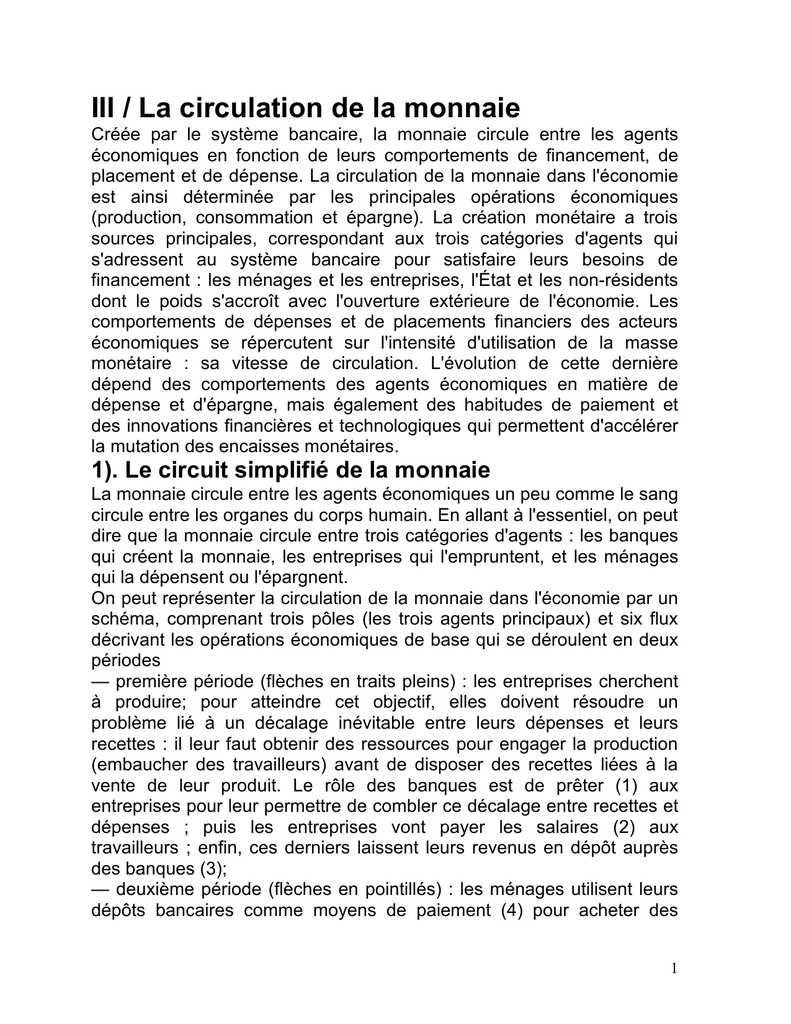 monétaire : sa vitesse de circulation. A certaines périodes, la monnaie