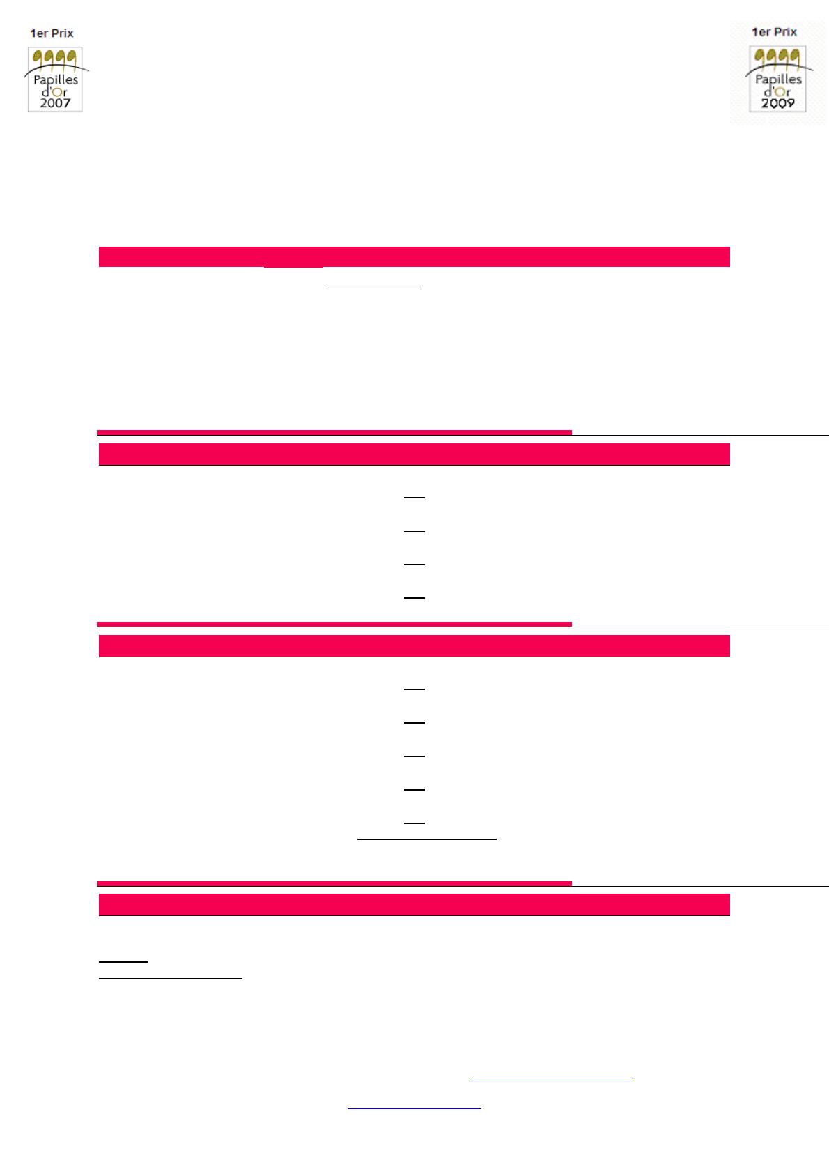 Inclus : Pain, boisson soft, verrerie, matériel de table « Filet Or », nappage, serviettes.