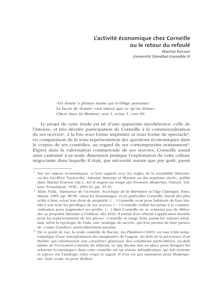 L’activité économique chez Corneille ou le retour du refoulé 37