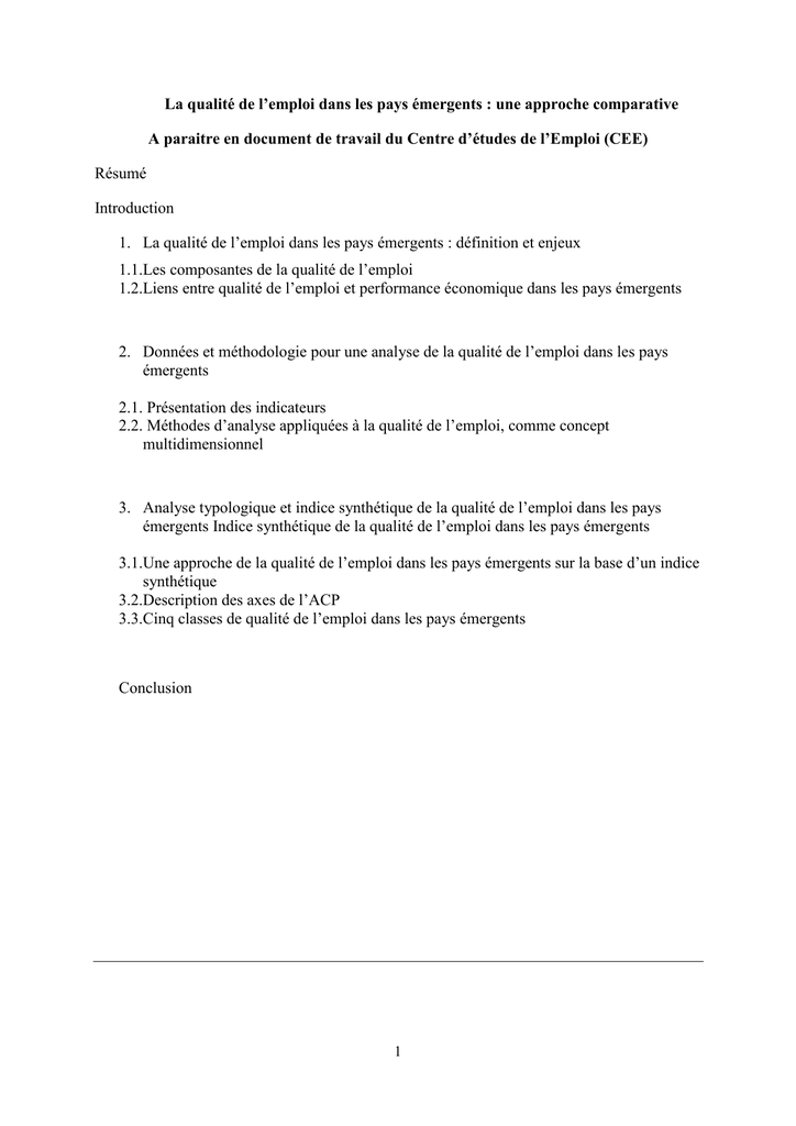 la qualité de l’emploi qui s’appliquent le mieux aux pays émergents, à proposer une mesure à
