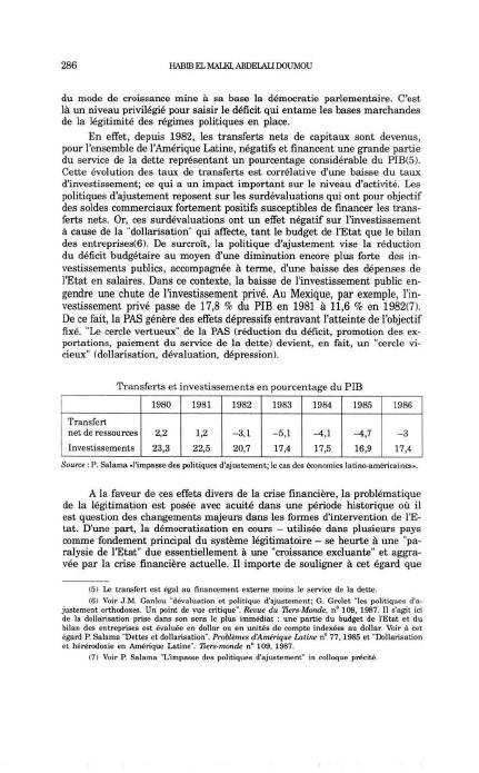 héritées des périodes précédentes. D'autre part, la politique d'Ajustement