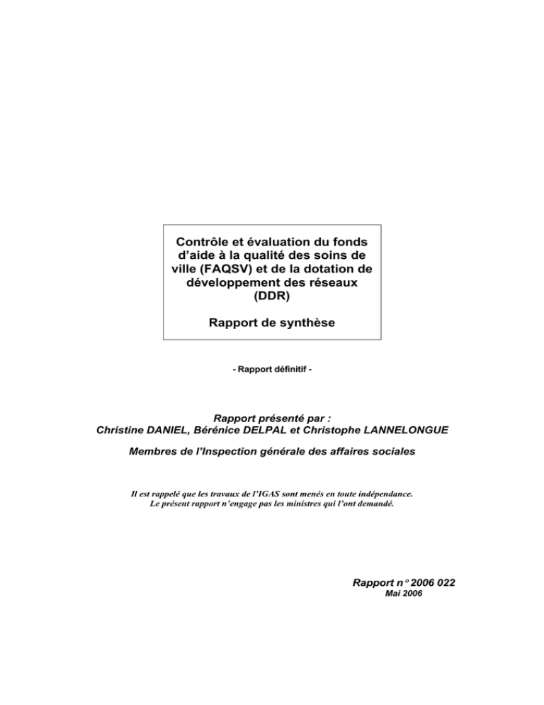 IGAS Contrôle et évaluation du FAQSV et de la DDR Février 2006