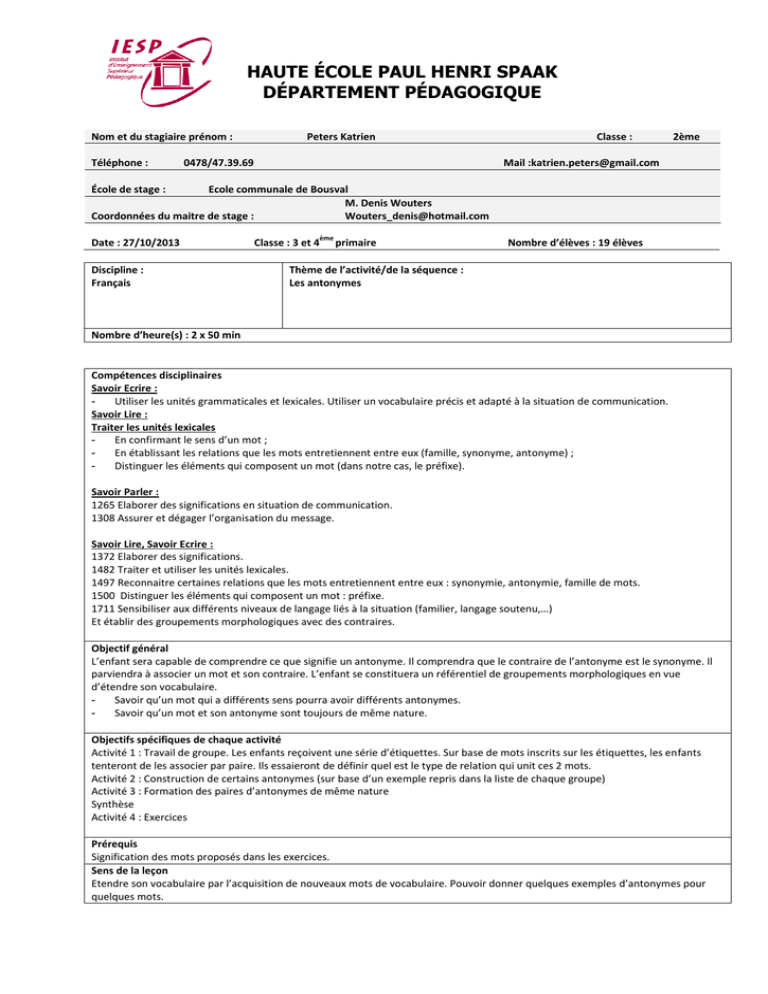 Attention : l’antonyme est un autre mot et non le même mot précédé de « pas ». !!!
