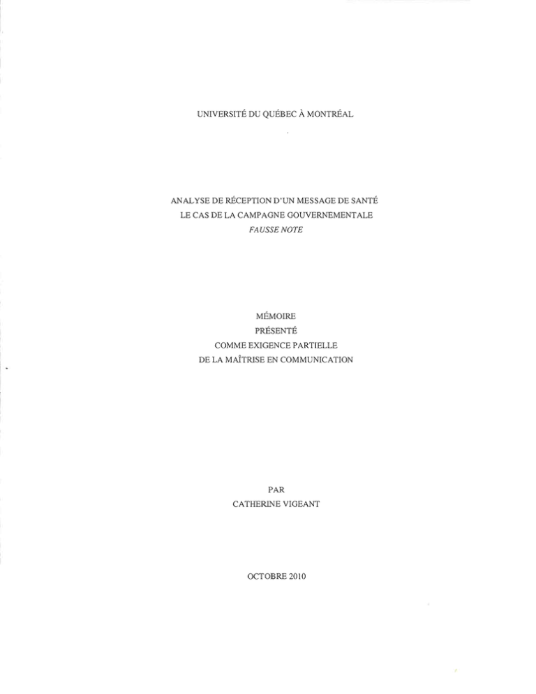 Richer, Yannick. 2007. Analyse d'une campagne publicitaire en santé, le cas de Vasy. Montréal, département de communication sociale de J'Université du Québec À