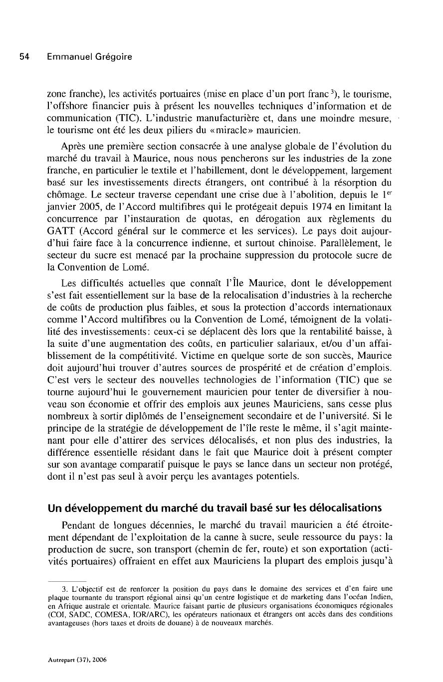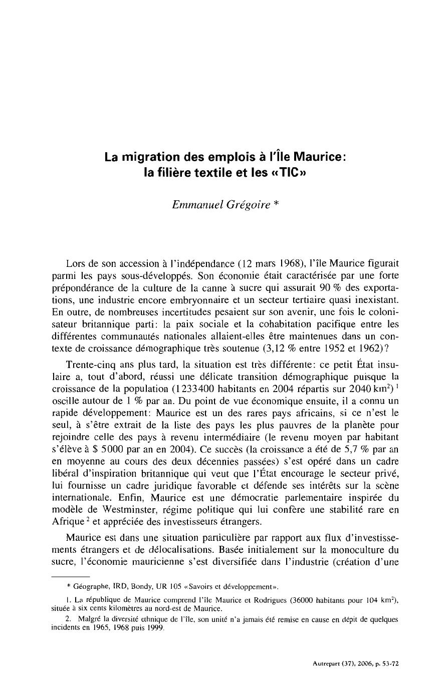 loppement soucieux de diversifier leur économie, Maurice avait alors adopté une