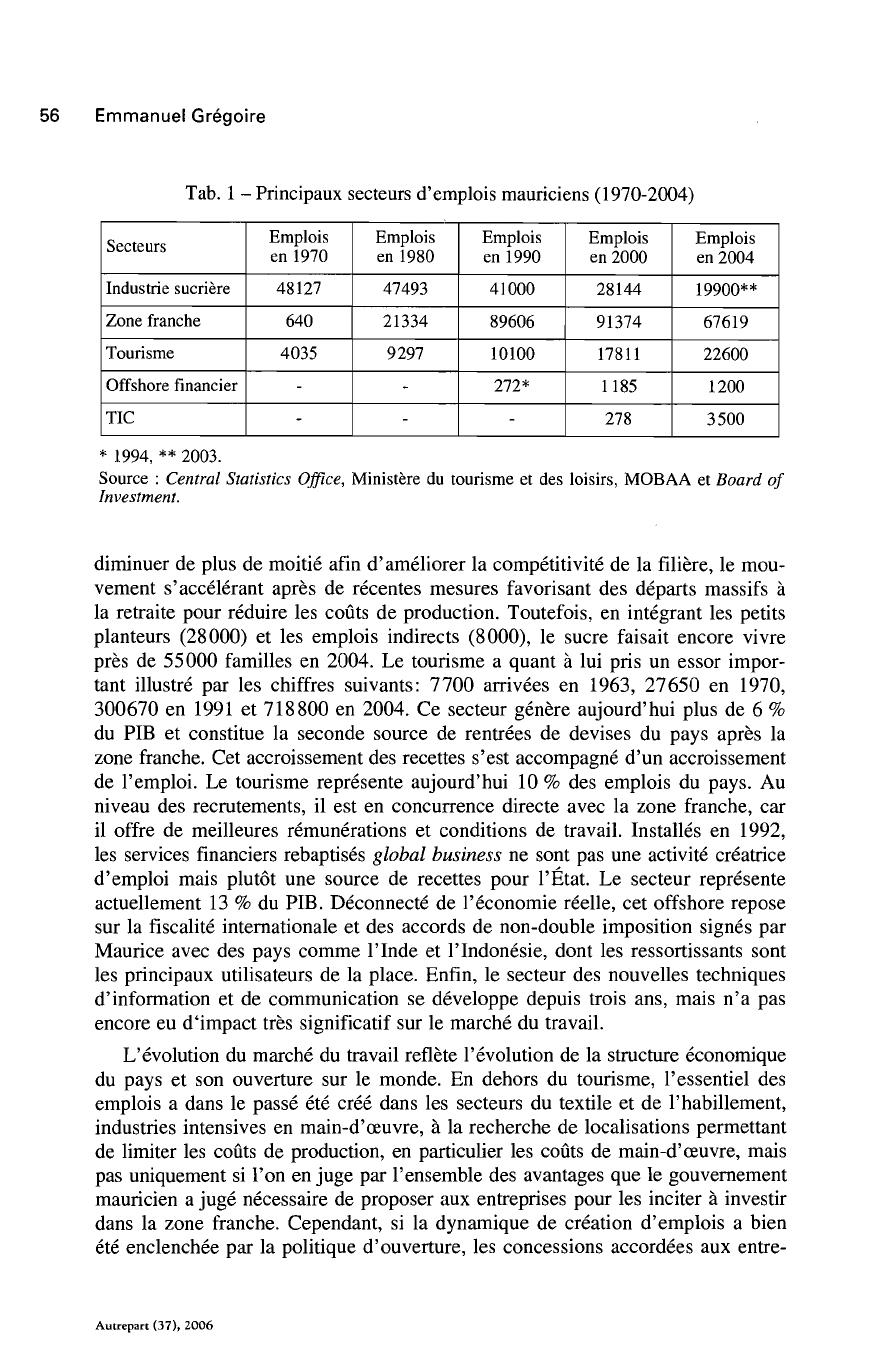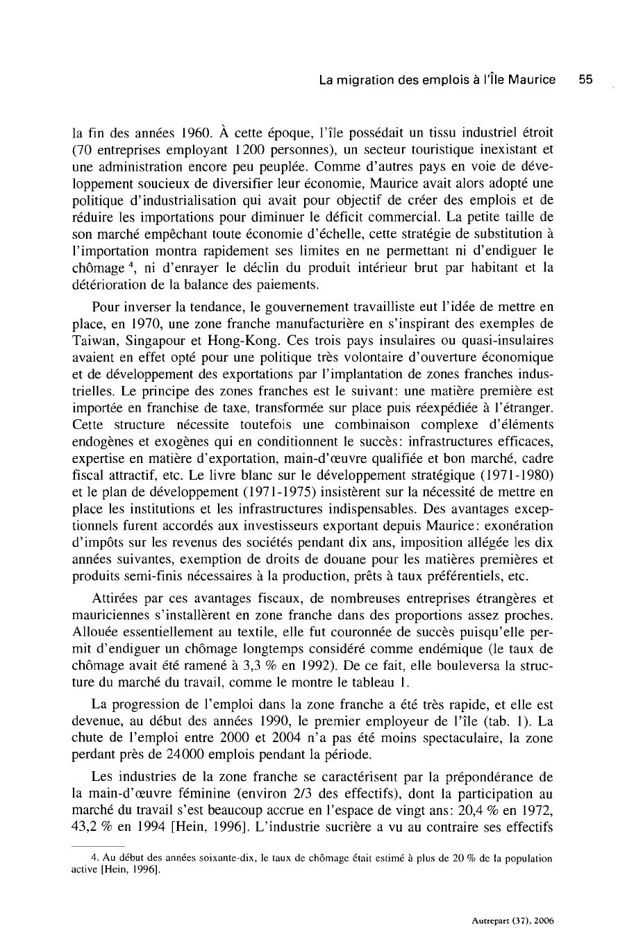 mauriciennes s'installèrent en zone franche dans des proportions assez proches.