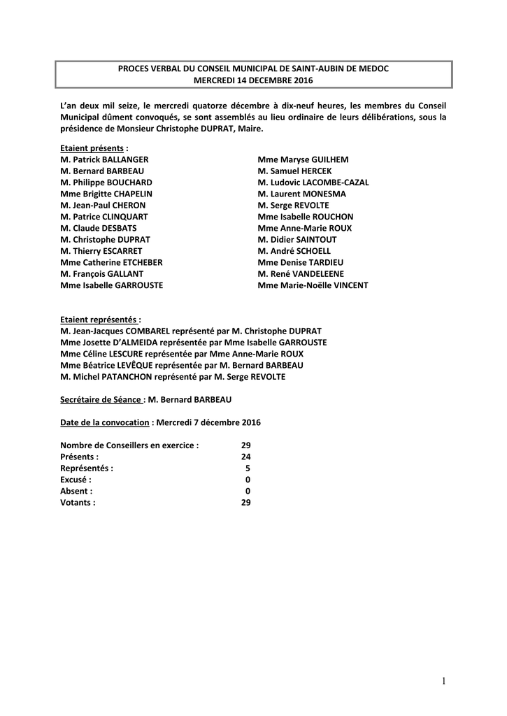 notamment le 15 décembre 2014 pour la commune de Saint Aubin de Médoc. Au sein du conseil