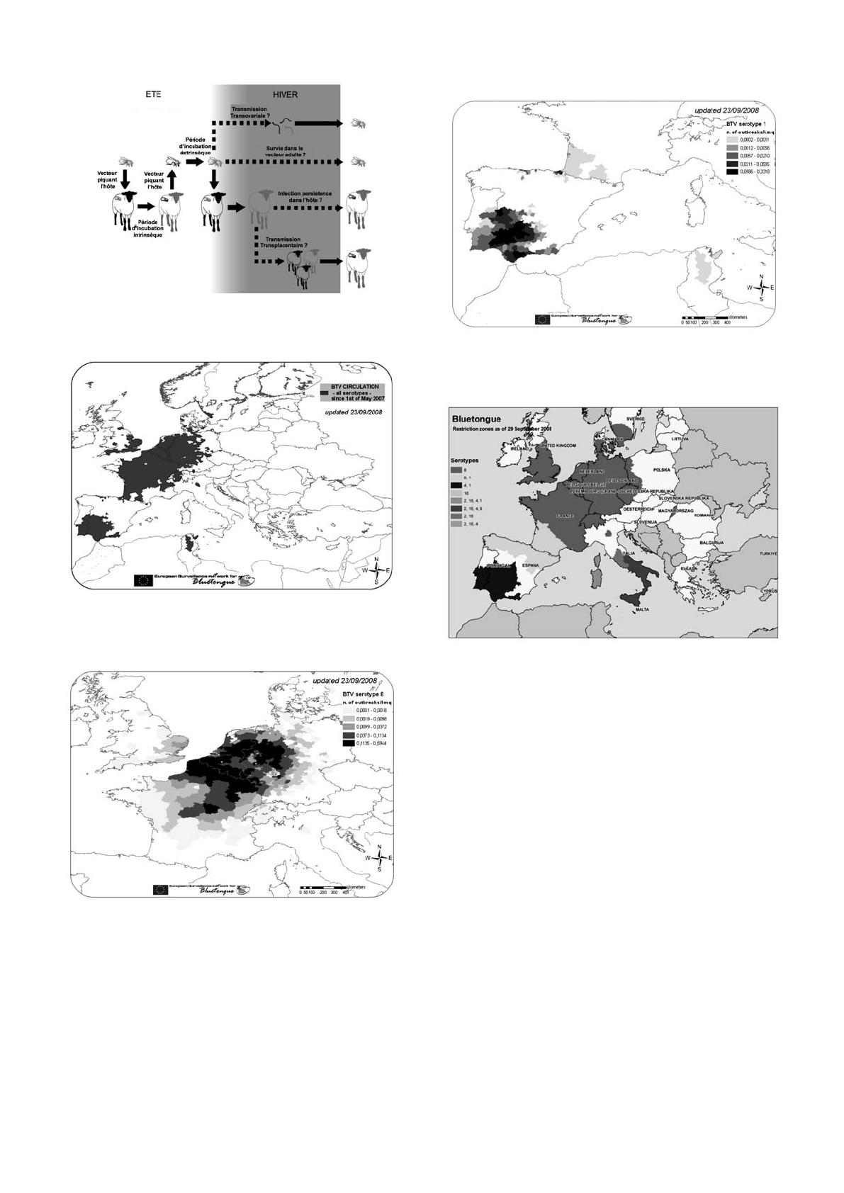 BTV-1 et 3 foyers « mixtes » BTV-1 / BTV-8 (AFSSA, 2008).