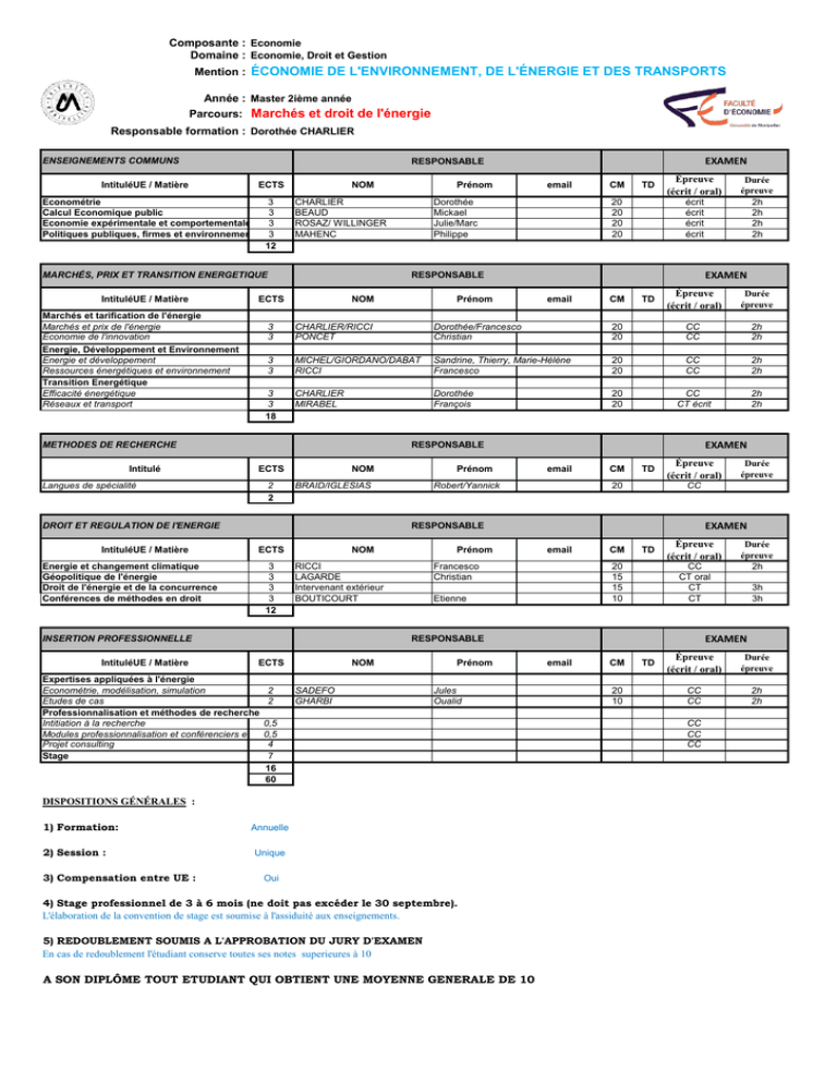 UE / Matière ECTS NOM Prénom email CM TD