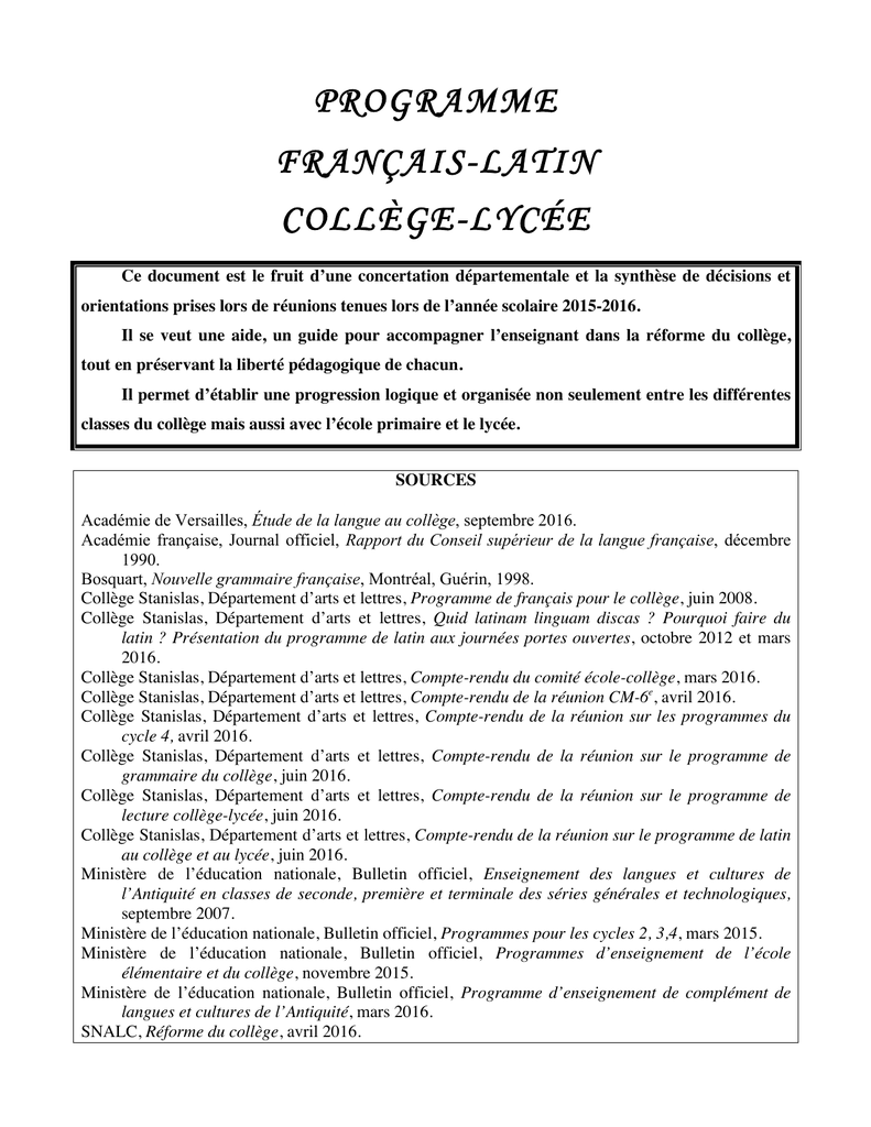 Collège Stanislas, Département d’arts et lettres, Compte-rendu de la réunion sur le programme de latin