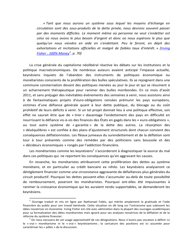 considérée. La monnaie est donc un crédit sur la société, un moyen de collectiviser les dettes