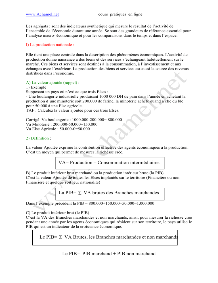 pour la satisfaction des besoins des ménages. Elle comprend la valeur d’acquisition des biens