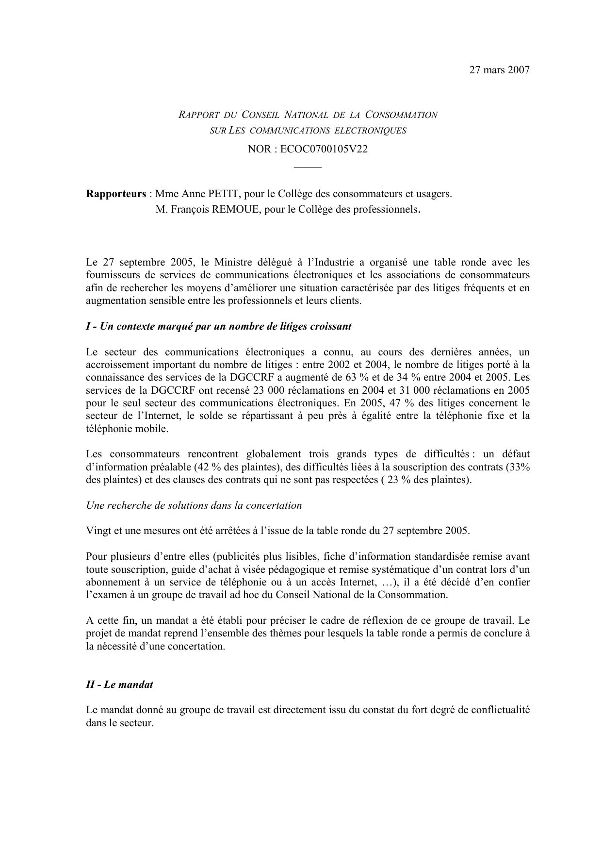 - mis à disposition sur les sites Internet des opérateurs, des associations de consommateurs ,