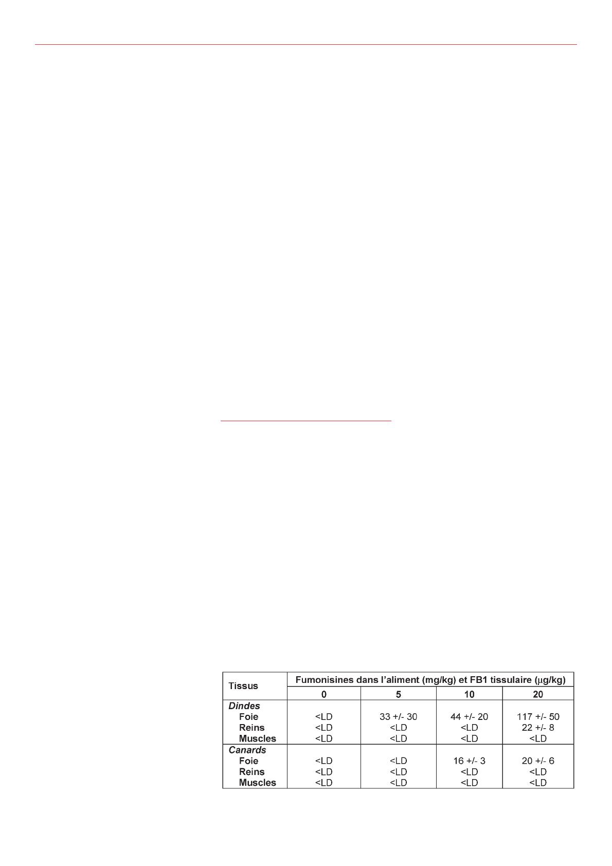 tions de toxine (2500 µg/kg d'aliment)