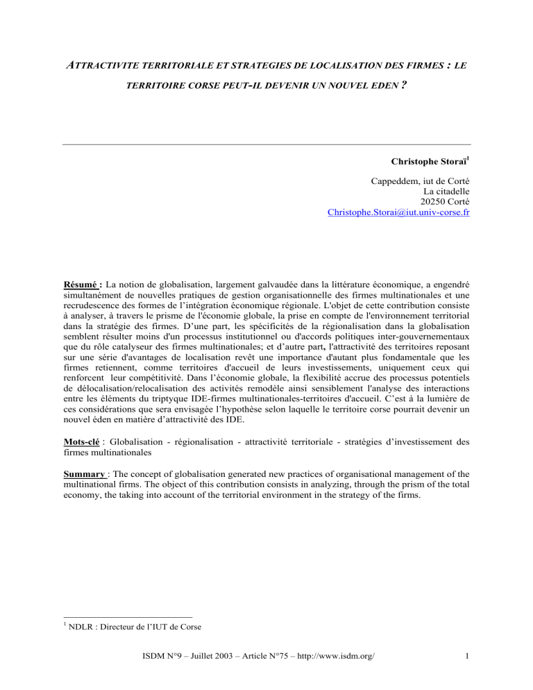 globalisation. Dans ce contexte, l'attractivité