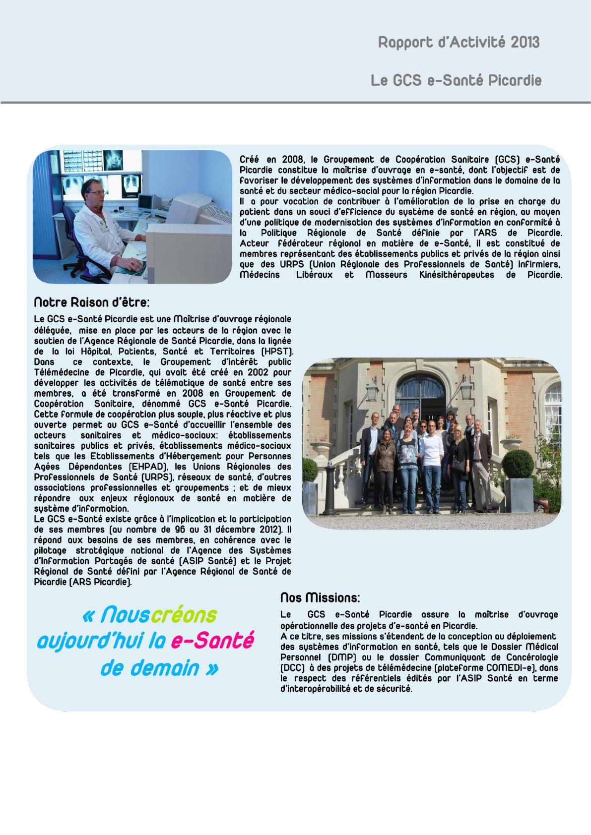 L’organisation du GCS e-Santé Picardie p 6