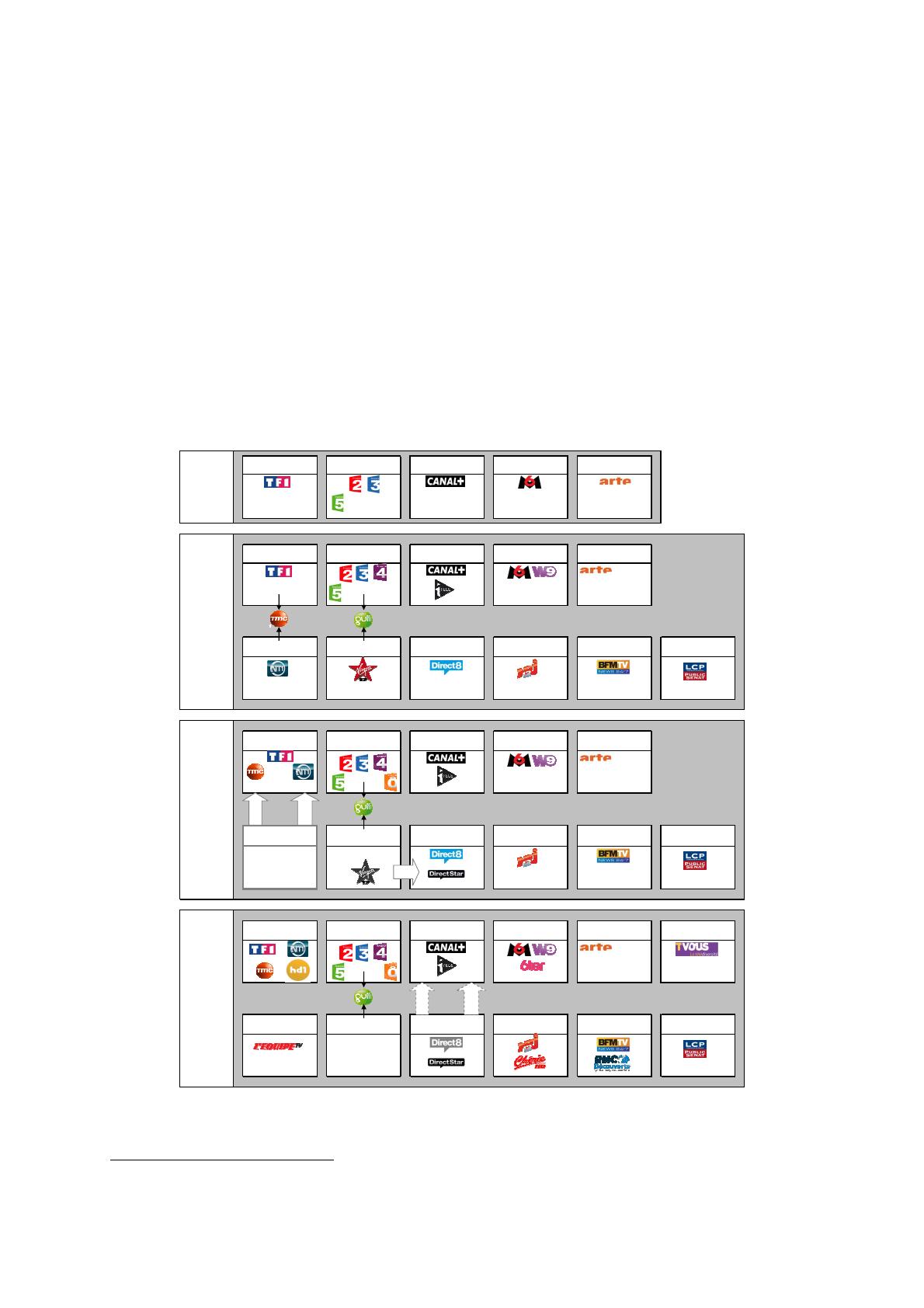 Chérie HD (groupe NRJ), L’Equipe HD (groupe Amaury), HD1 (groupe TF1), RMC Découverte (groupe NextRadioTV),