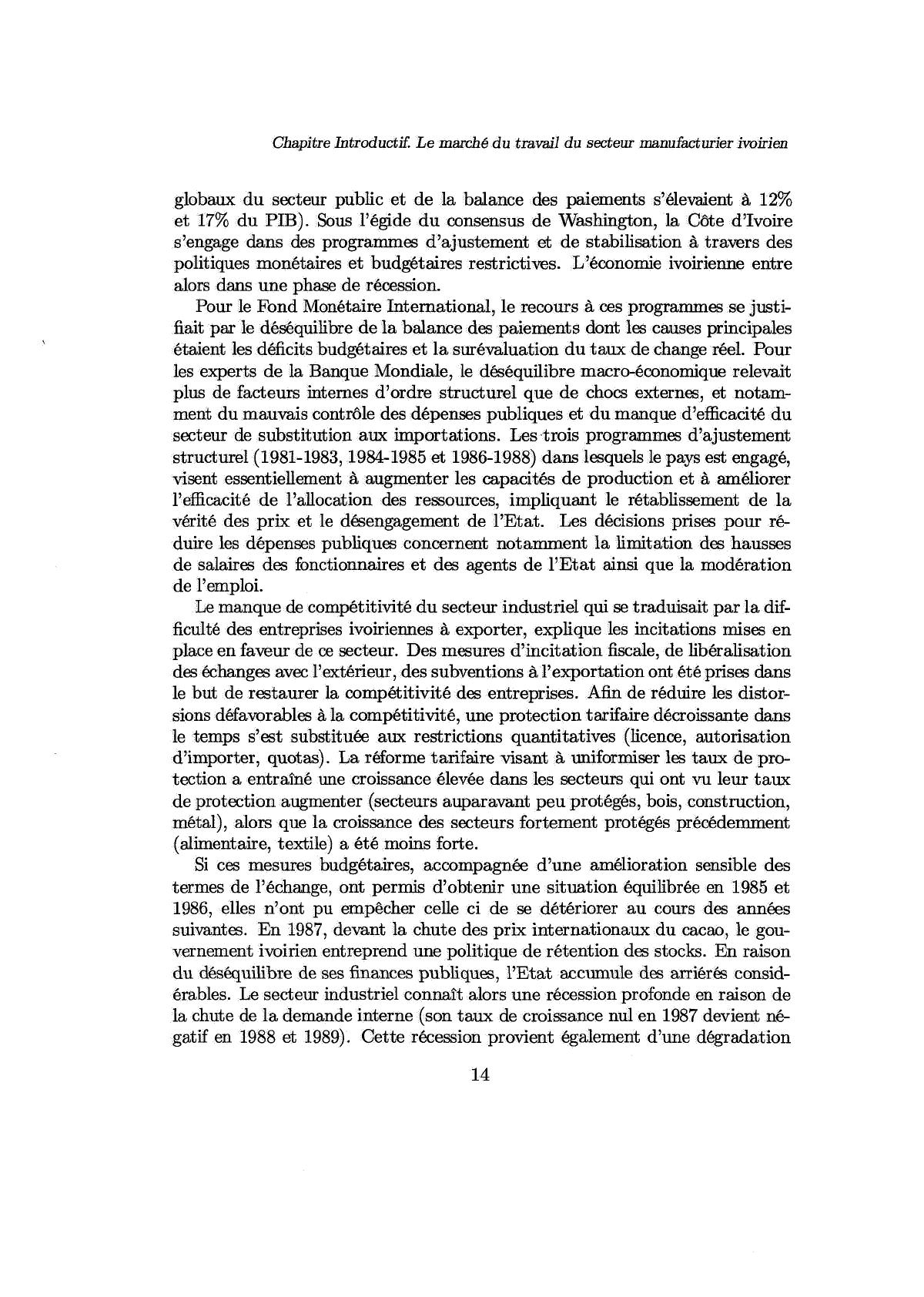 Chapitre Introductif. Le marché du travail du secteur manufacturier