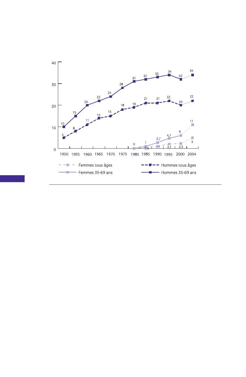 femmes en 1980 à 12,6 en 2005 (alors que celui des hommes a augmenté