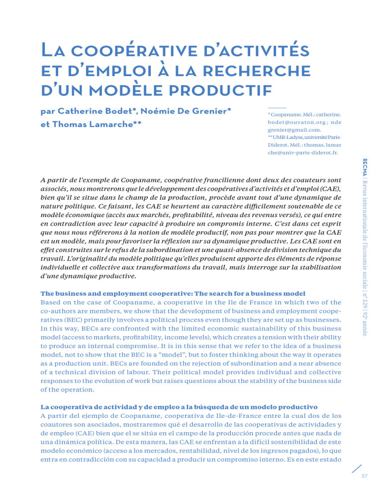 recma | Revue internationale de l’économie sociale | n° 329 | 92e année