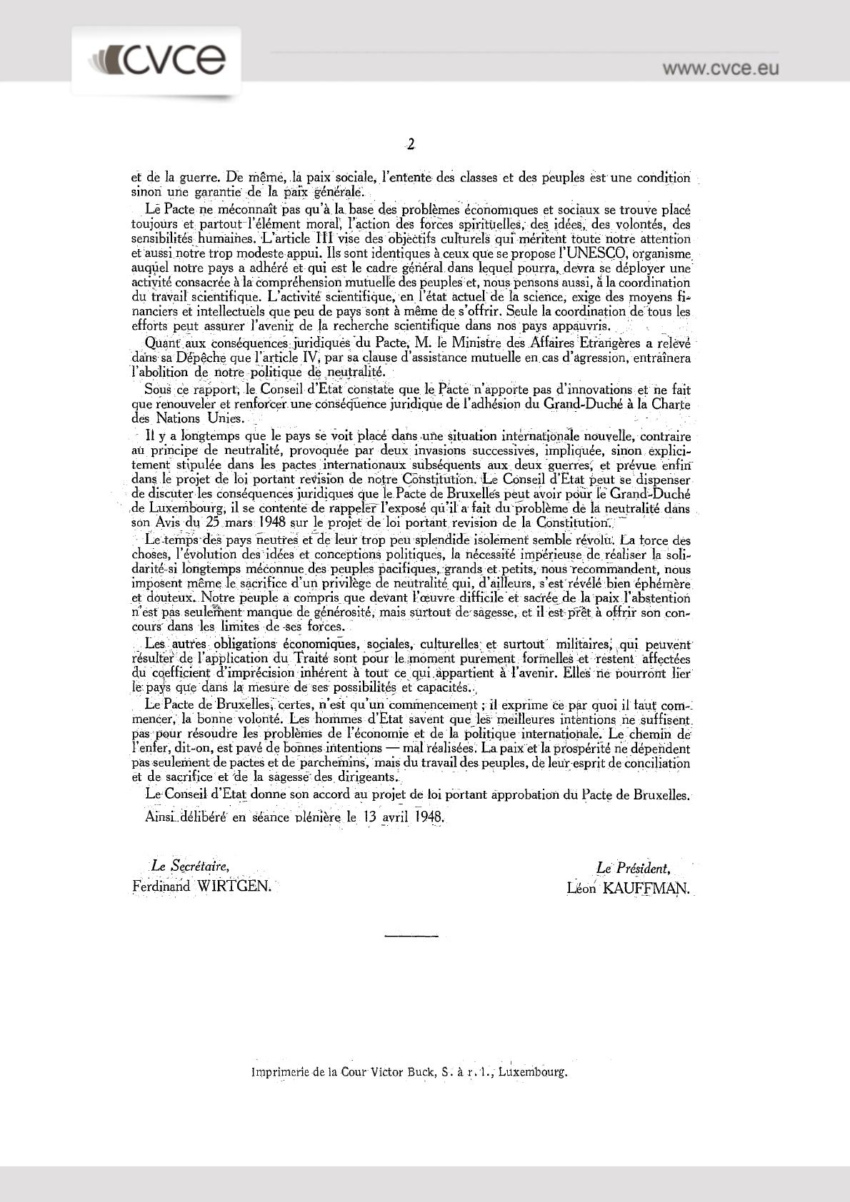 de discuter les conséquences juridiques que le Pacte de Bruxelles peut avoir pour le Grand-Duché