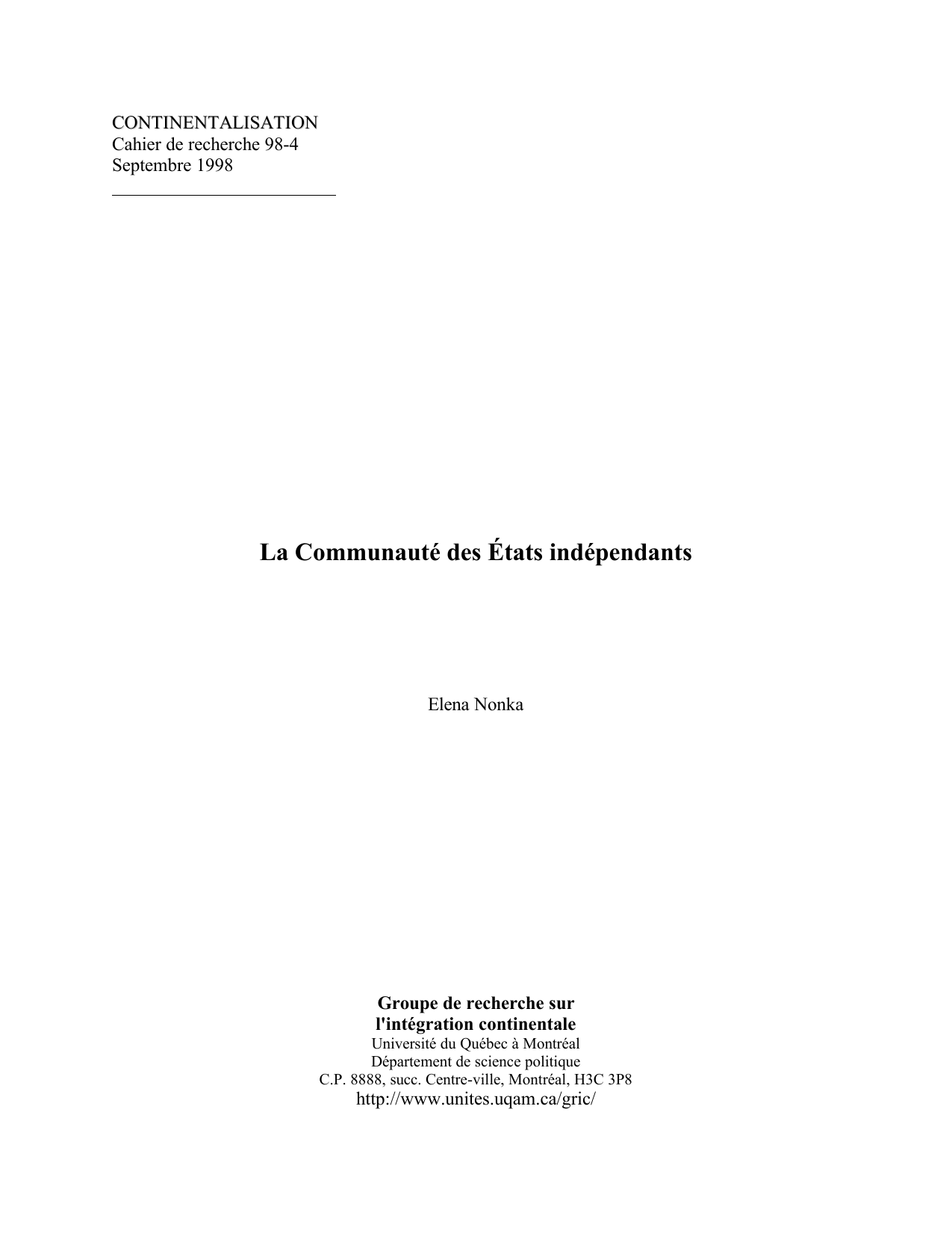 le problème spécifique de l’intégration1 économique régionale des États à l’intérieur de la CEI que