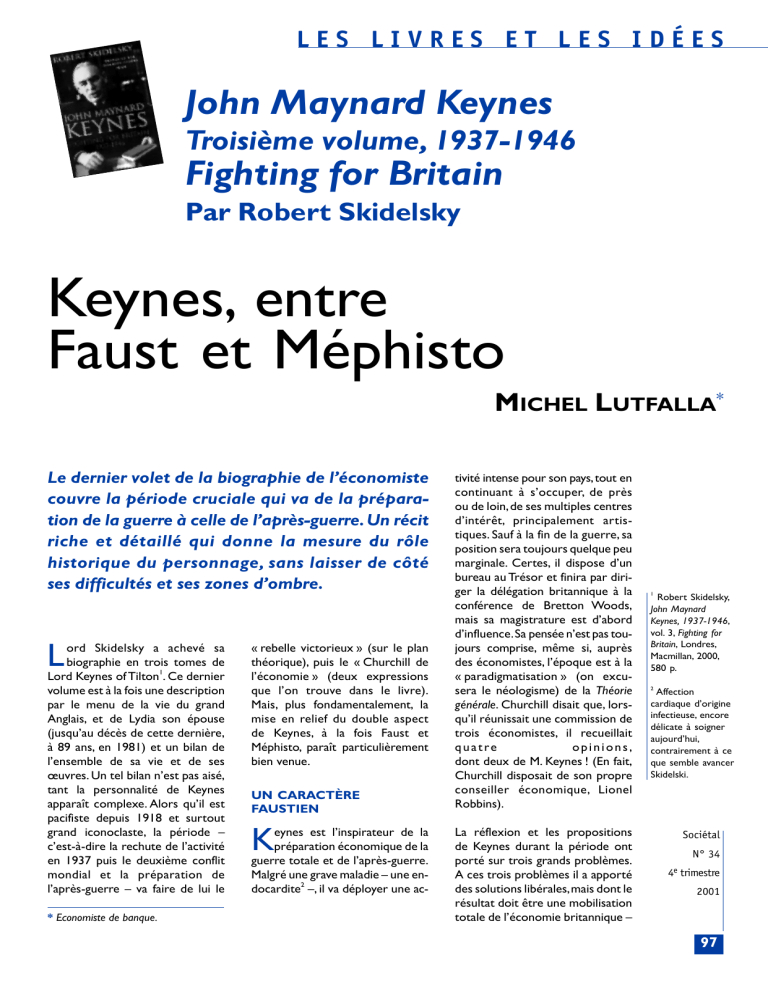 KEYNES, ENTRE FAUST ET MÉPHISTO