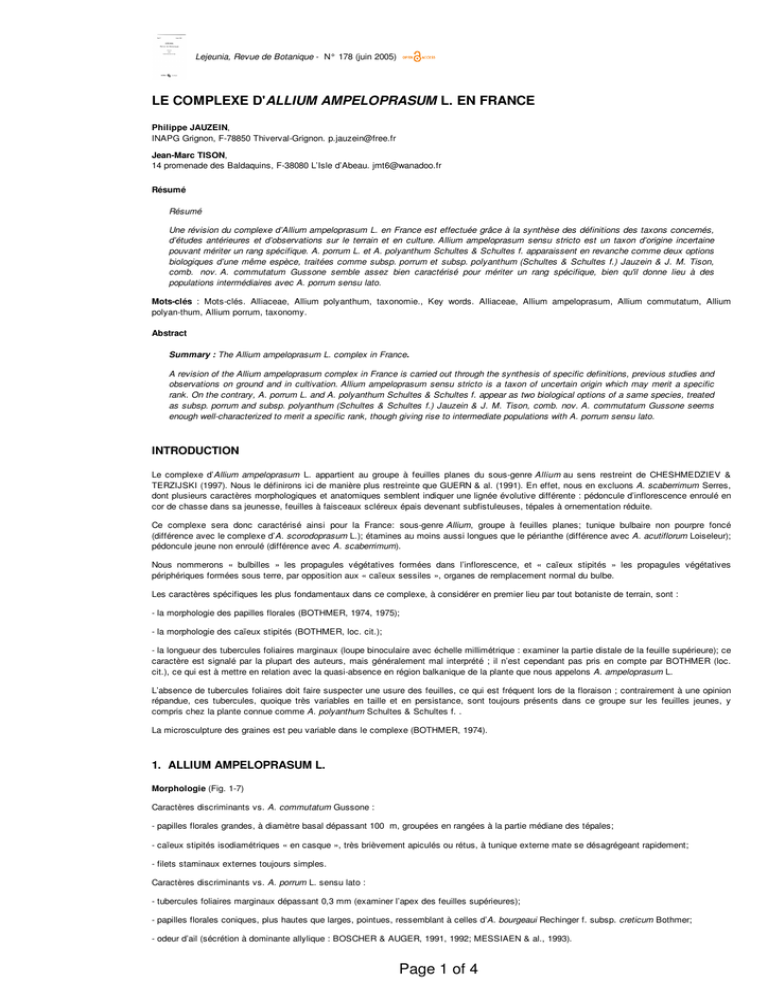 de perplexité chez les botanistes [A. ampeloprasum sensu MOLINIER & MARTIN (1981), non L.; A. ampeloprasum var. ampeloprasum sensu