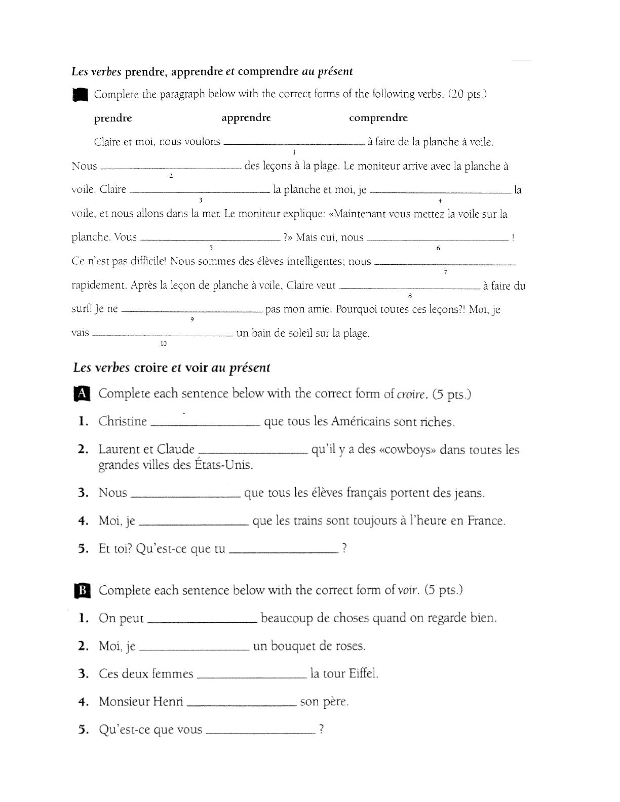 Irréguliers : être, avoir, aller, prendre, comprendre, apprendre, faire, pouvoir, vouloir, mettre,