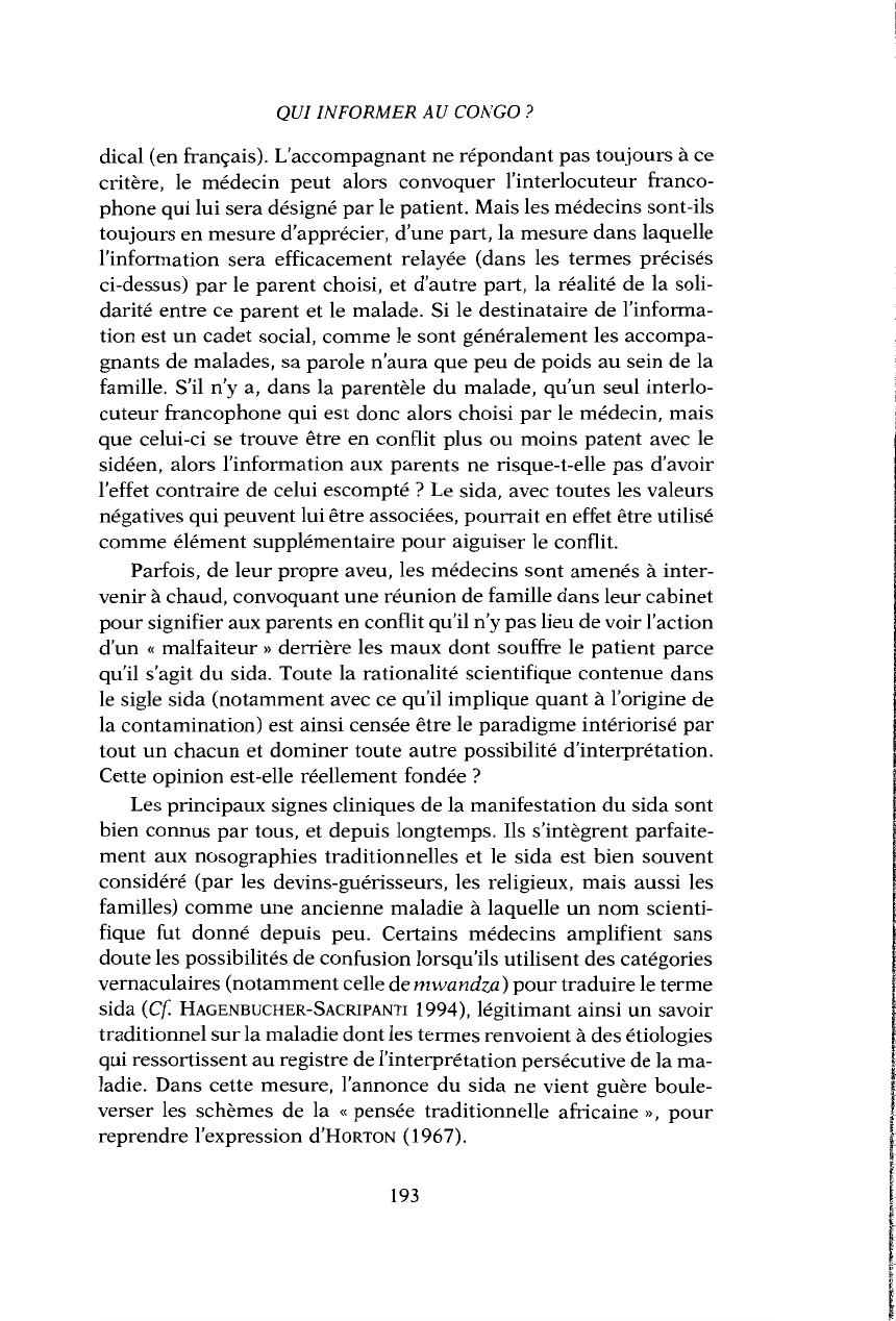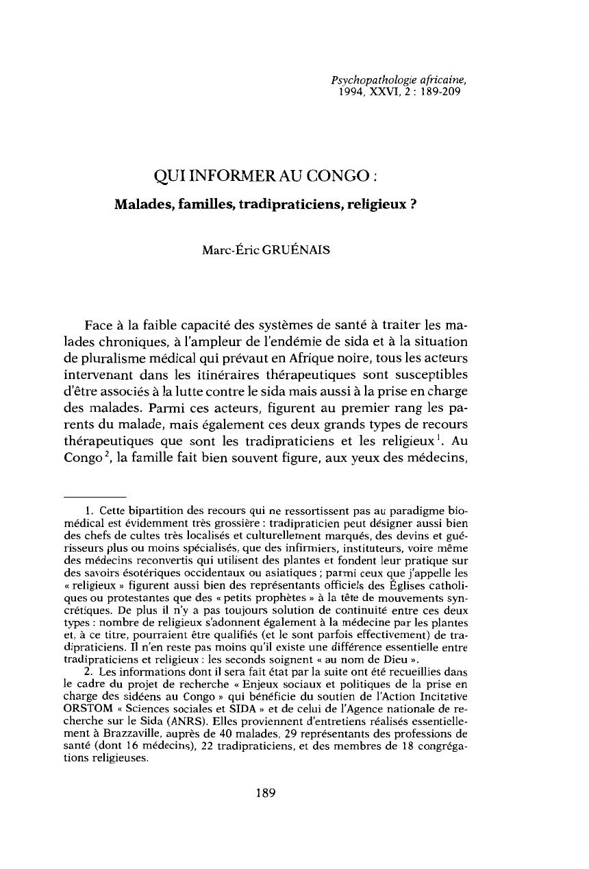 Qui informer au Congo : malades, familles, tradipraticiens, religieux ?