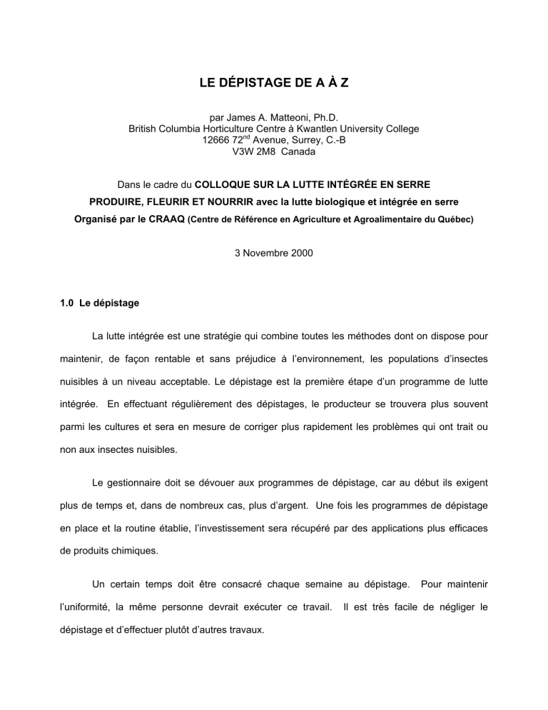 ¾ Identifiez l’espèce avant de choisir un agent biologique.