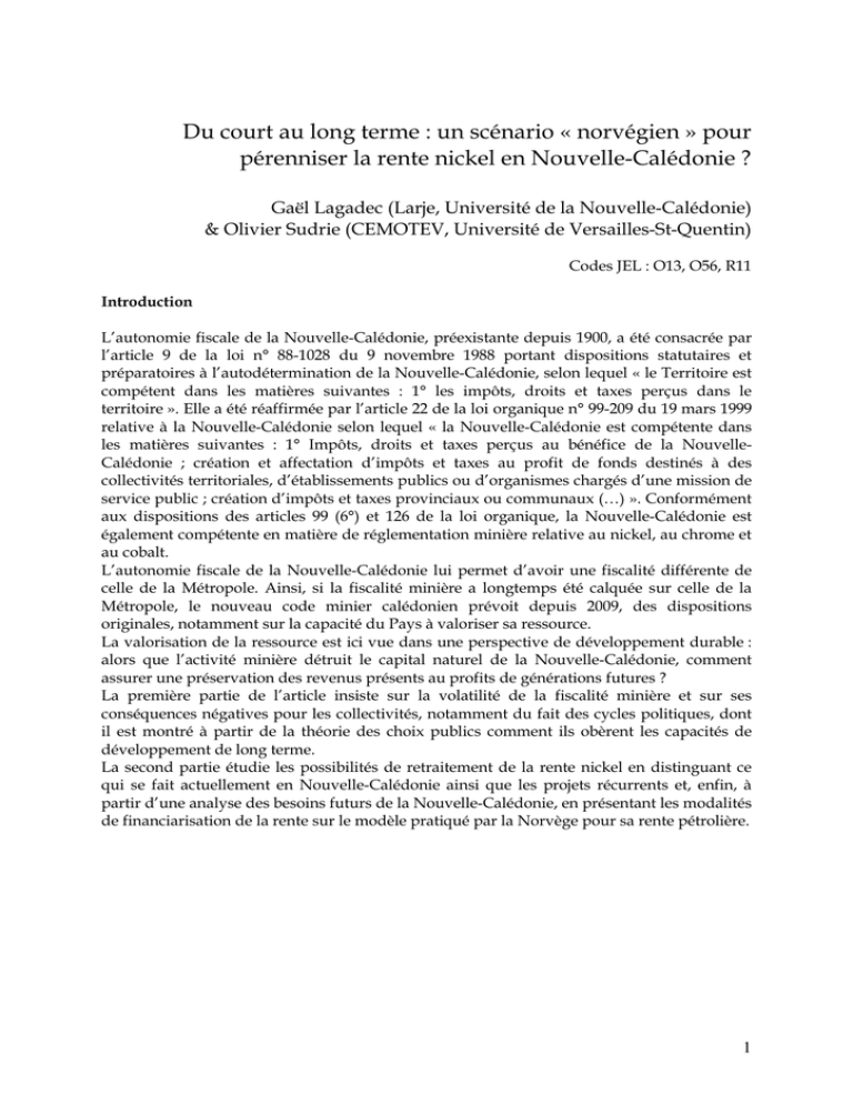 autonomie institutionnelle croissante, la Nouvelle-Calédonie se trouvera confrontée à moyen