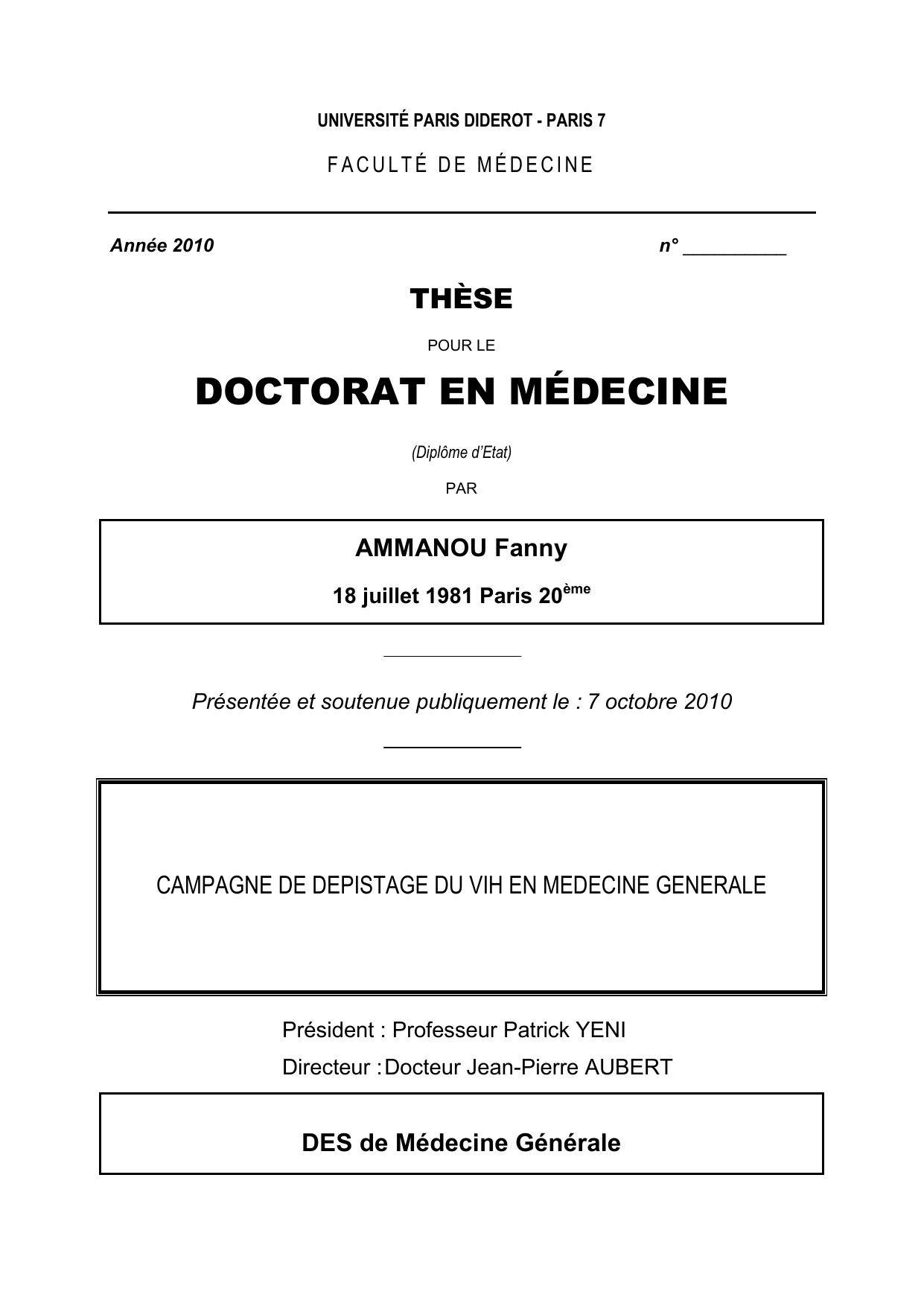 Présentée et soutenue publiquement le : 7 octobre 2010