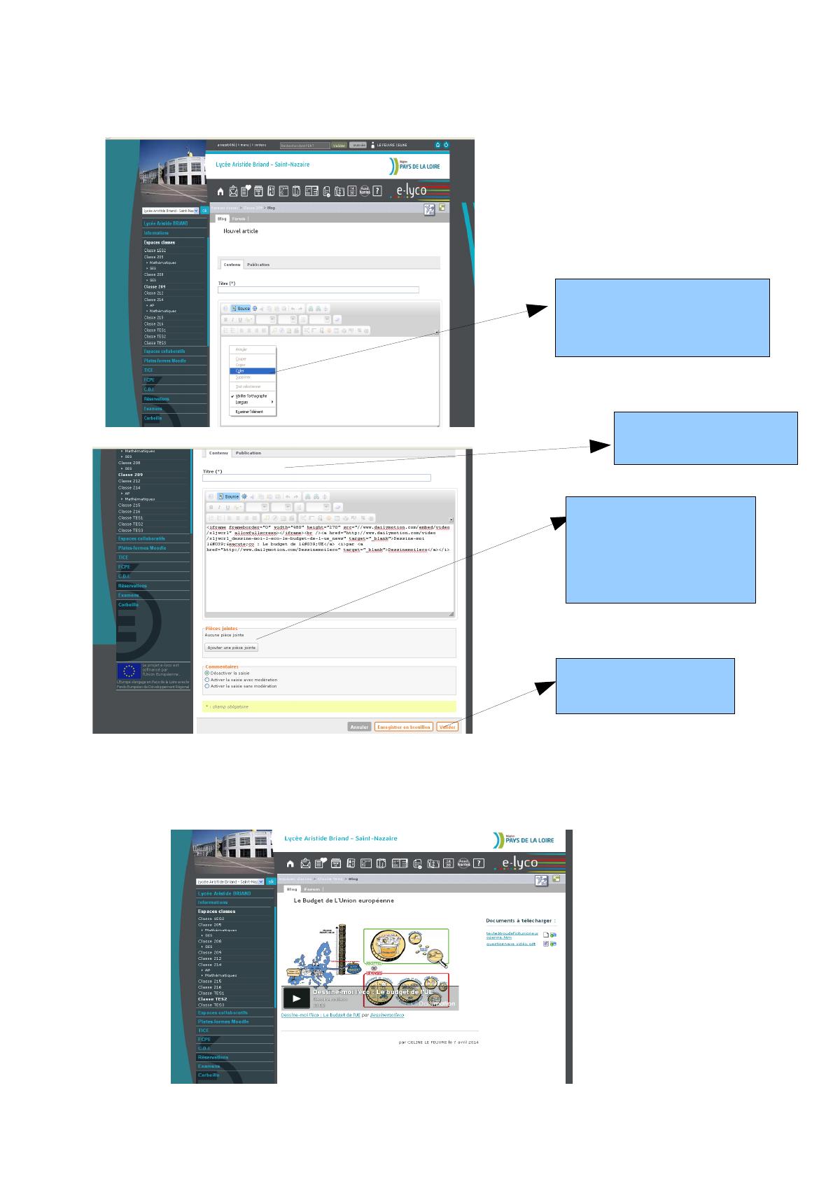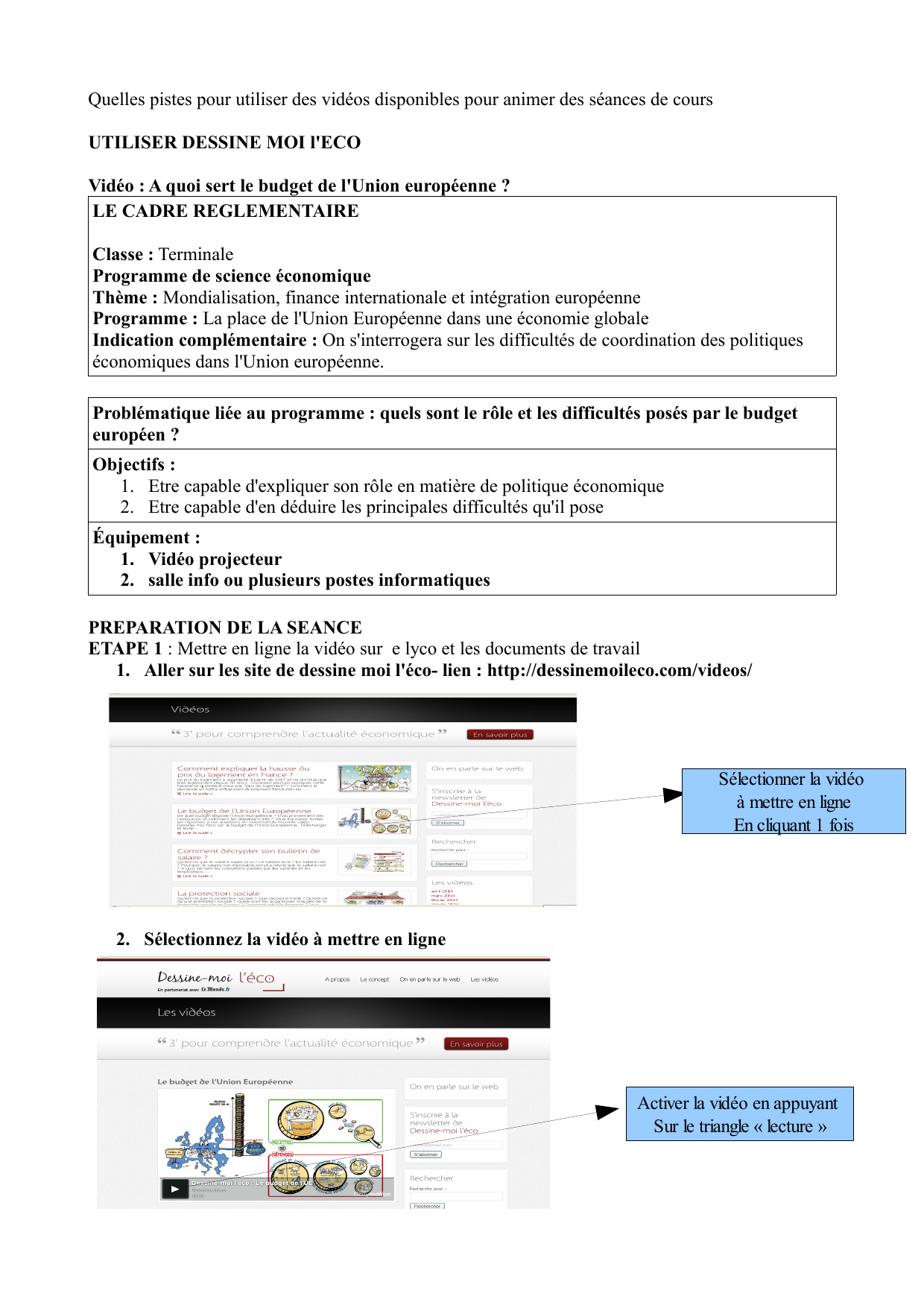ETAPE 1 : Mettre en ligne la vidéo sur e lyco et les documents de travail