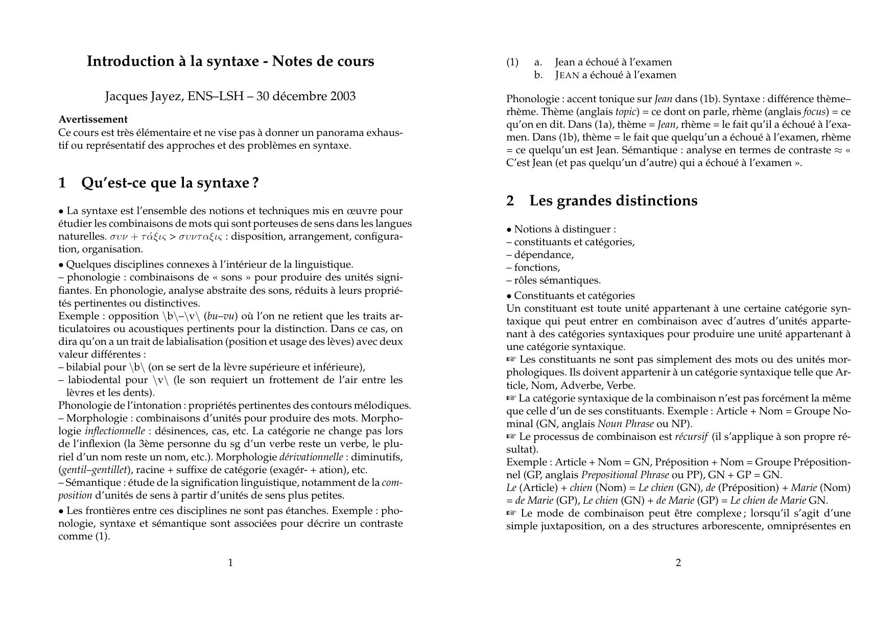 des catégories syntaxiques.