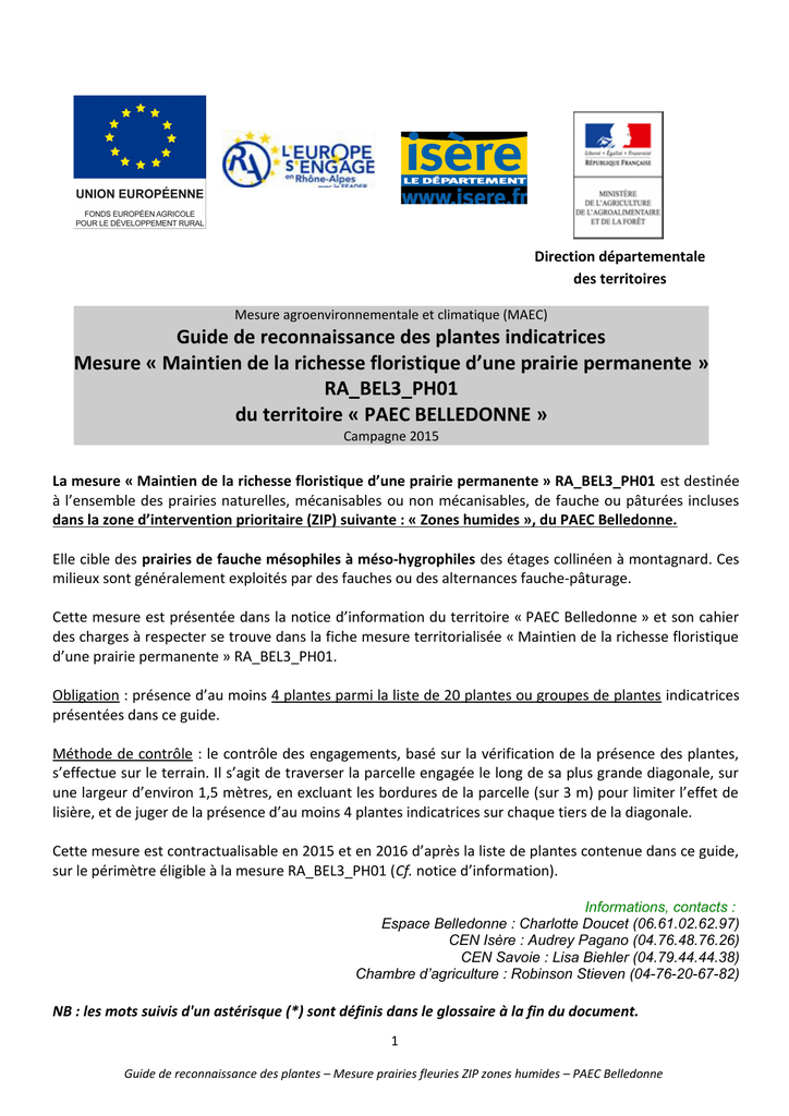 Guide de reconnaissance des plantes – Mesure prairies fleuries ZIP zones humides – PAEC Belledonne