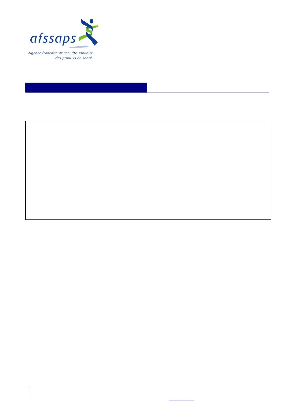 143/147, bd Anatole France - F-93285 Saint-Denis cedex - tél. +33 (0)1 55 87 30 00 - www.afssaps.fr 2 / 3