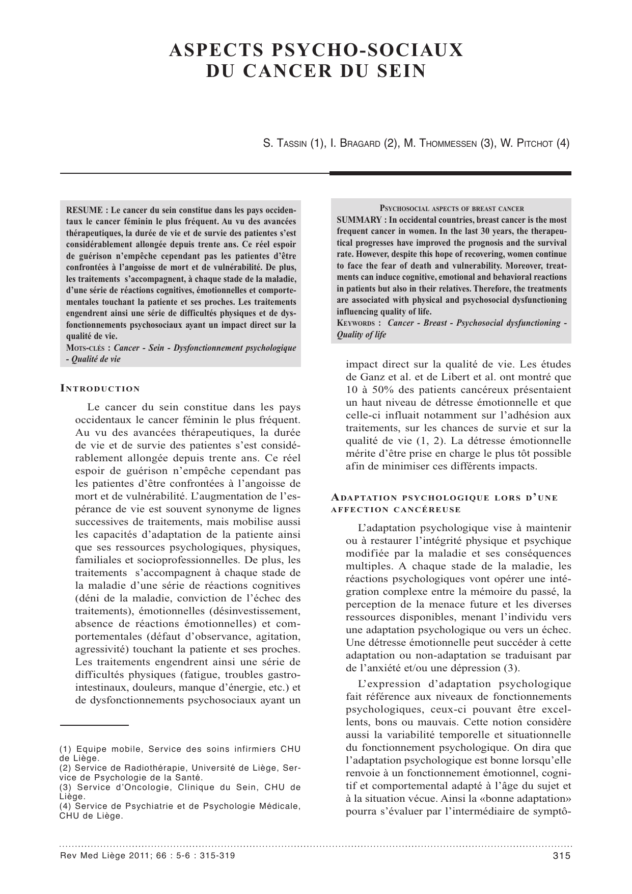 Rev Med Liège 2011; 66 : 5-6 : 315-319