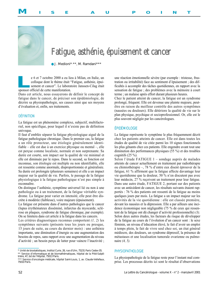 base de données Medline avec les mots “fatigue et cancer”