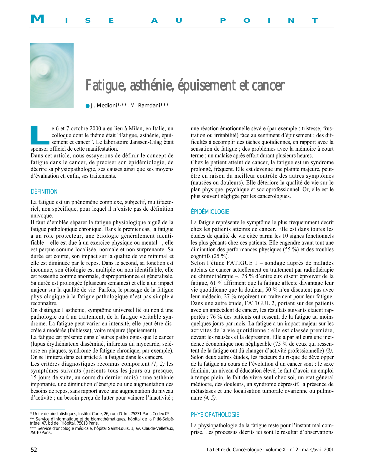 La Lettre du Cancérologue - volume X - n° 2 - mars/avril 2001