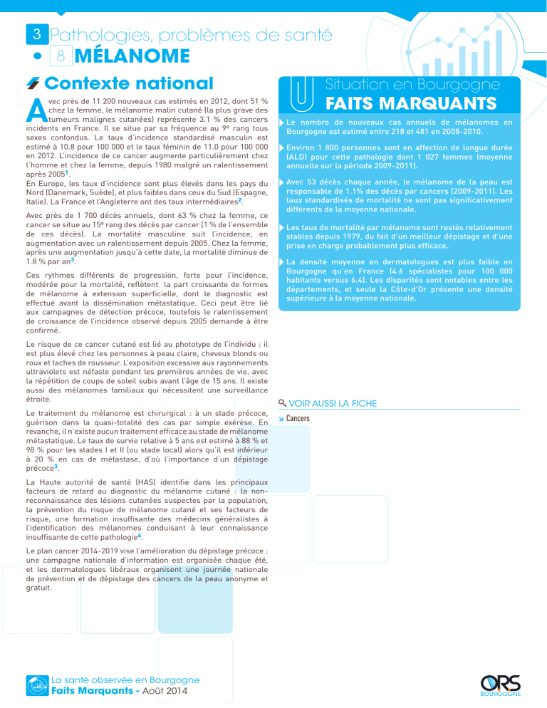 responsable de 1.1% des décès par cancers (2009-2011). Les