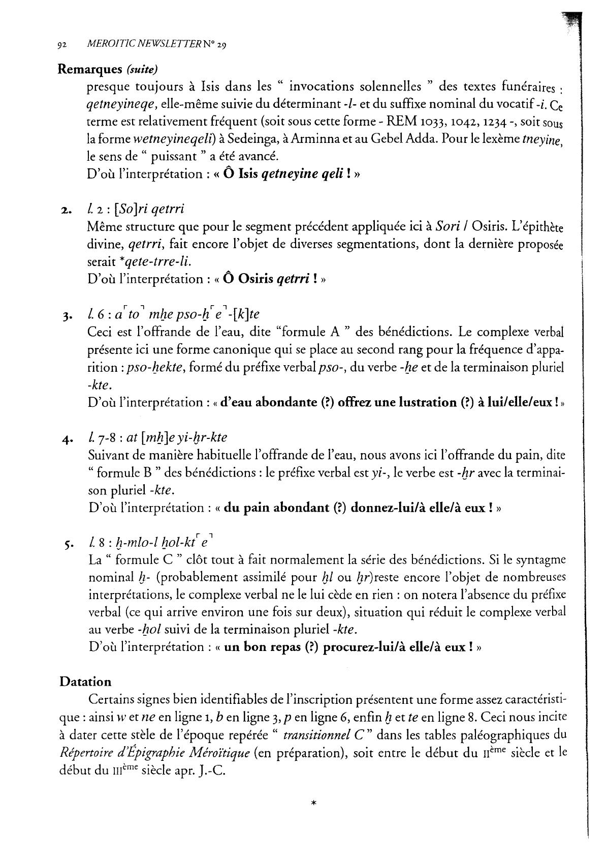 Certains signes bien identifiables de I'inscription presentent une forme assez caracteristi-