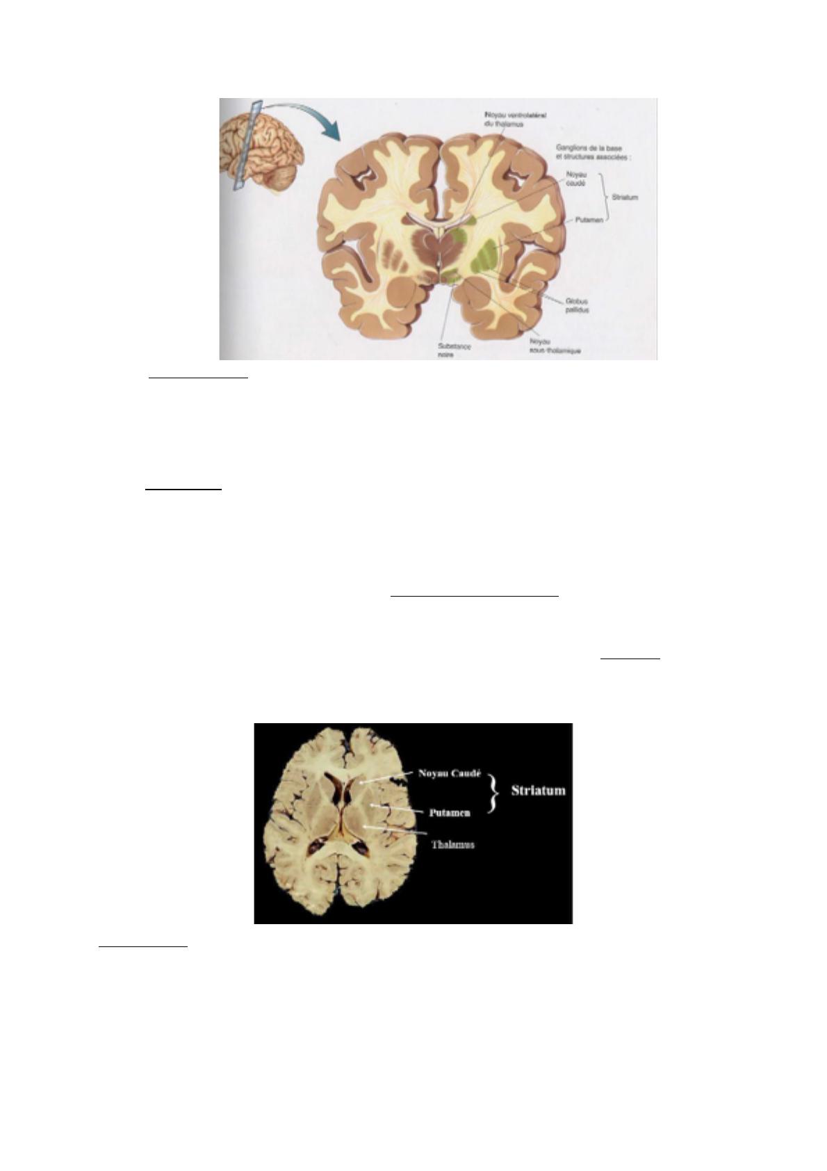 ➢Globus pallidus interne (Gpi) = voies de sortie vers le thalamus (projection sur le