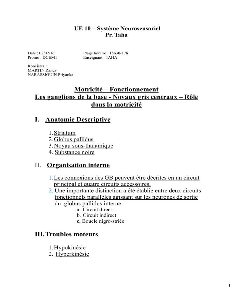 thalamus). Quand un message vient du cortex, il passe soit directement par pallidus