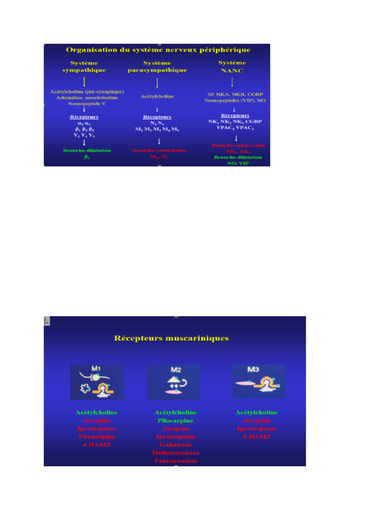 retrouve, l'Ipratropium qui est un anti cholinergique, et qui va bloquer ces récepteurs